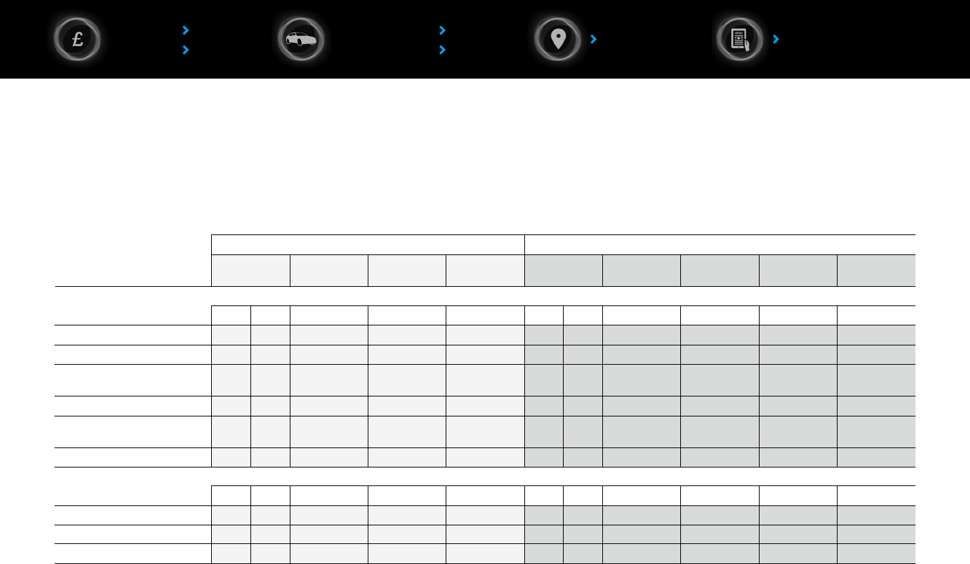 ¹A different first year rate of Vehicle Excise Duty (Road Fund Licence) applies for new cars. Please refer to page 77 for the relevant rate for the second and subsequent years