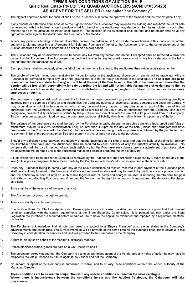 QUAID AUCTIONEERS FOR IN HOUSE OR ON SITE AUCTIONS