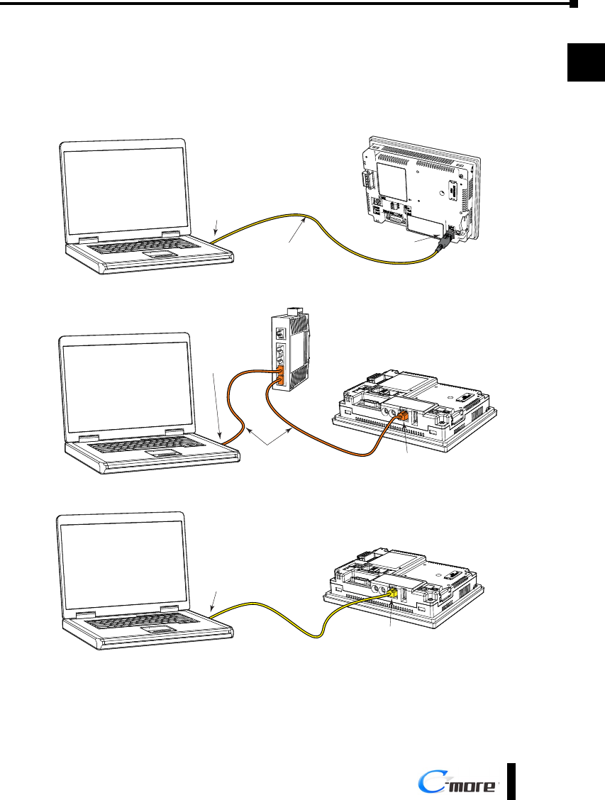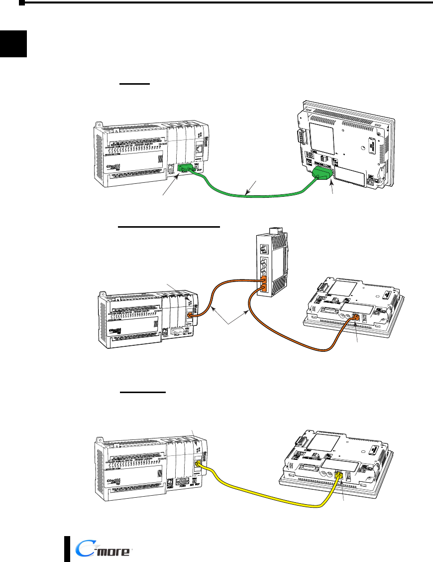 • or connect the C-more touch panel and PLC together either directly or via an Ethernet switch, and