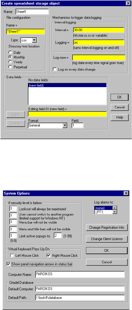 system data to disk—Spreadsheet Logger, Citadel Historical Database, and