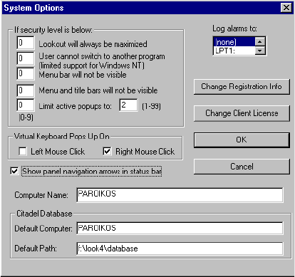 Citadel Database section of the System Options dialog box illustrated