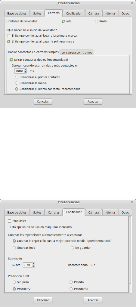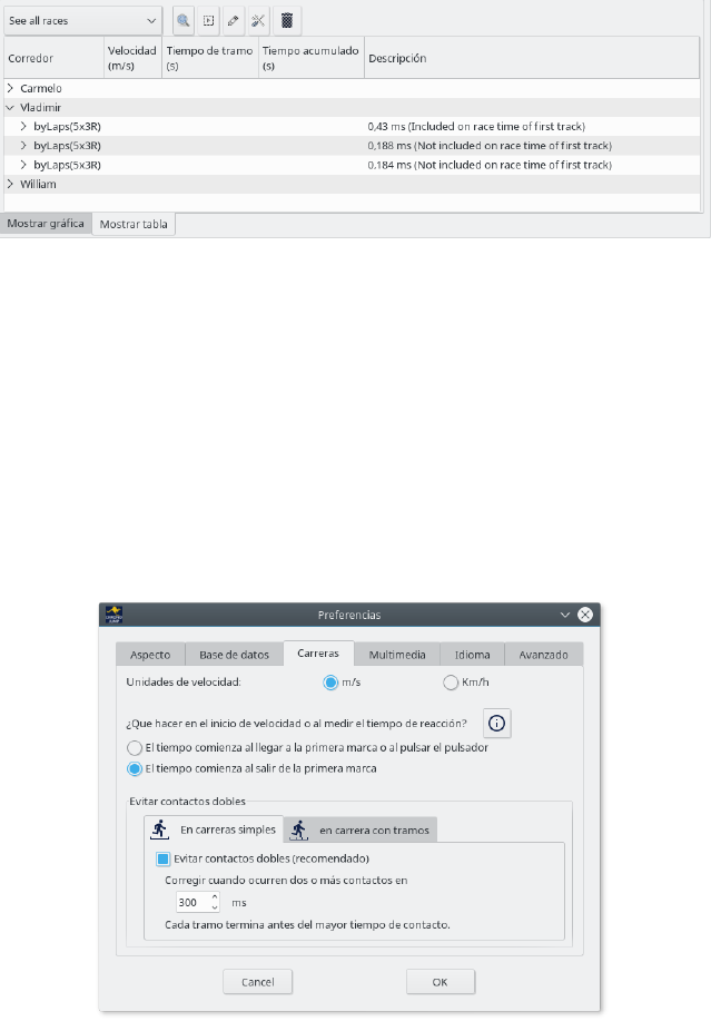 - Feedback auditivo y visual en las carreras con tramos: campanas