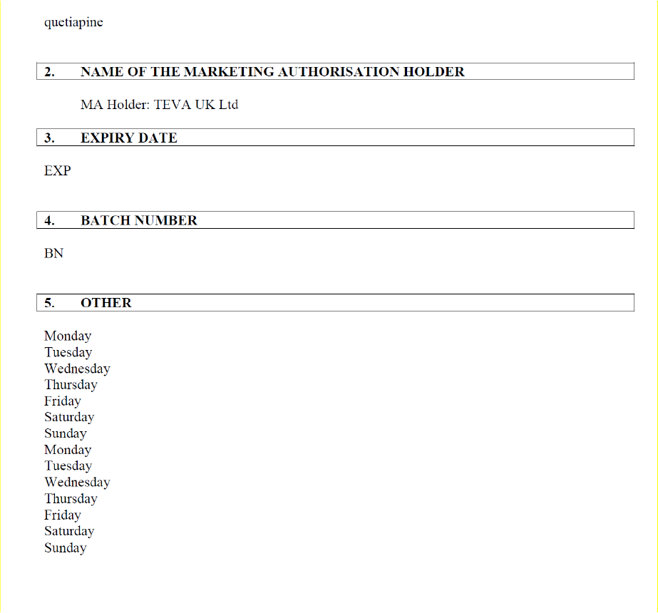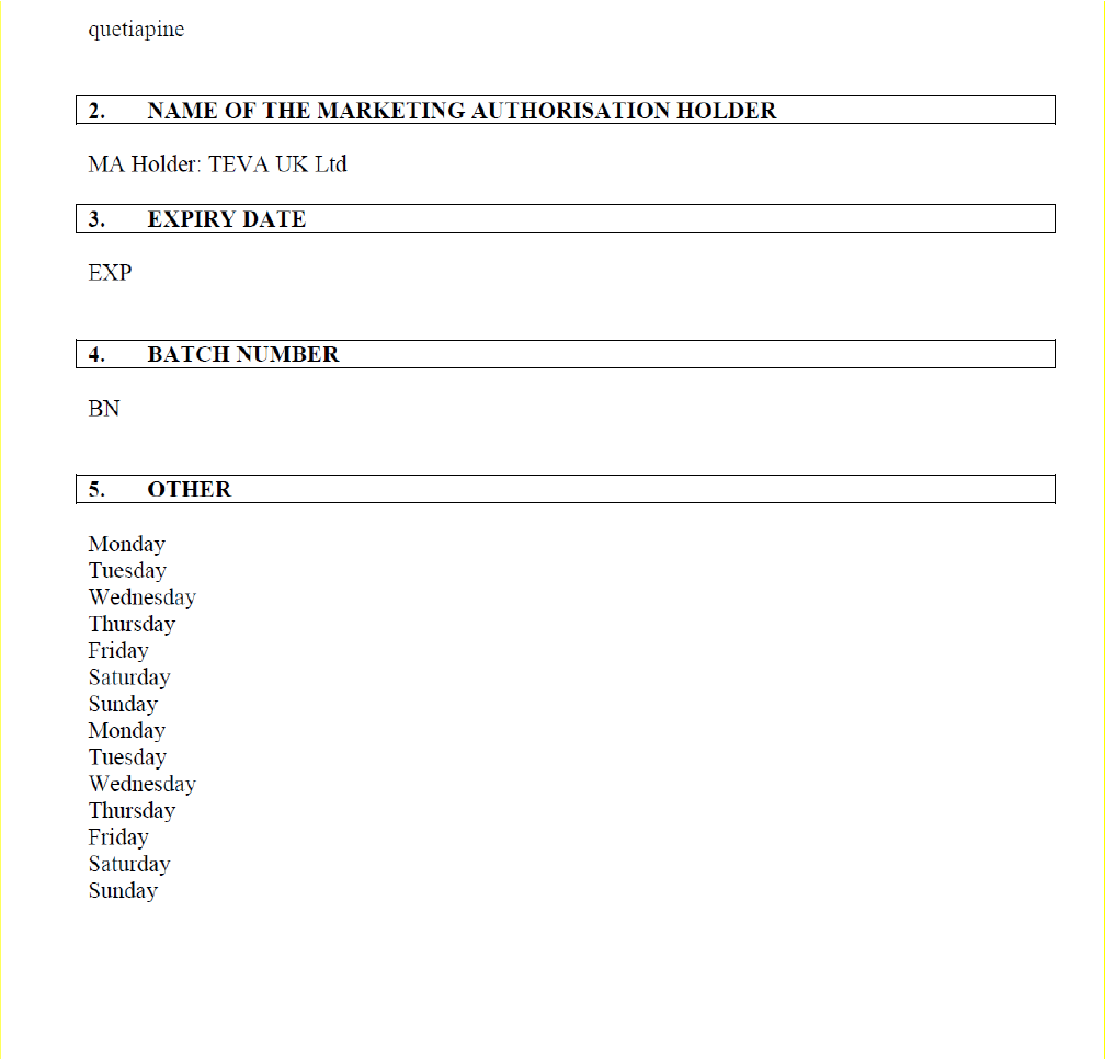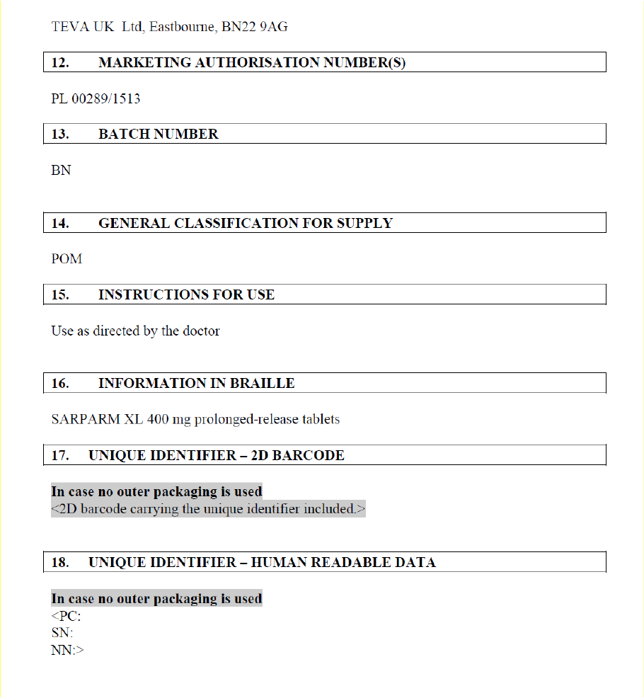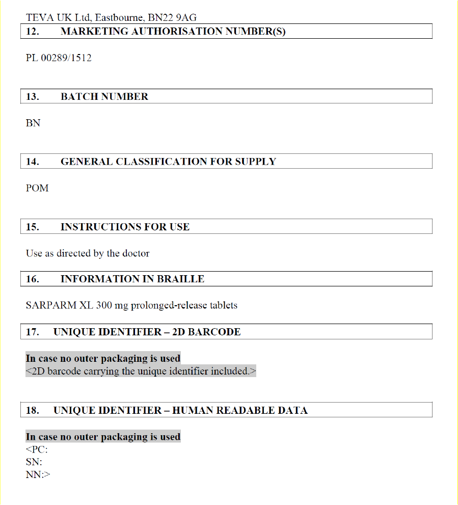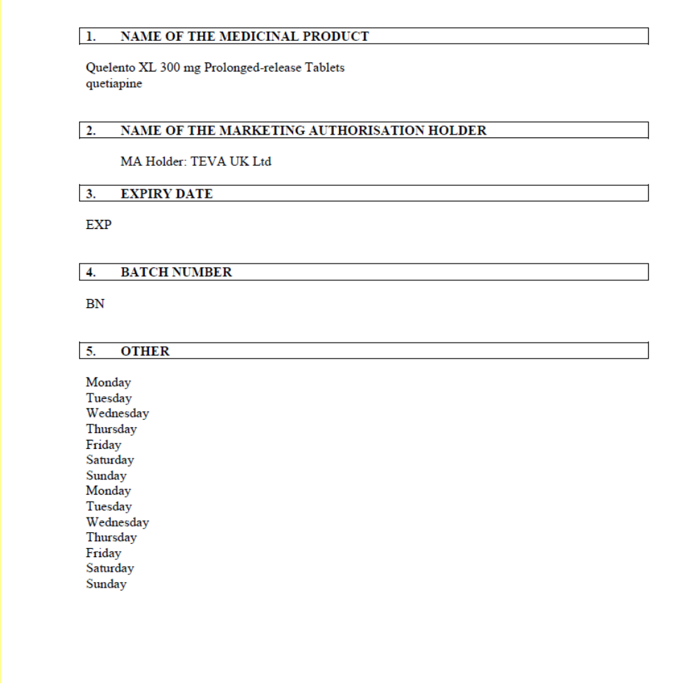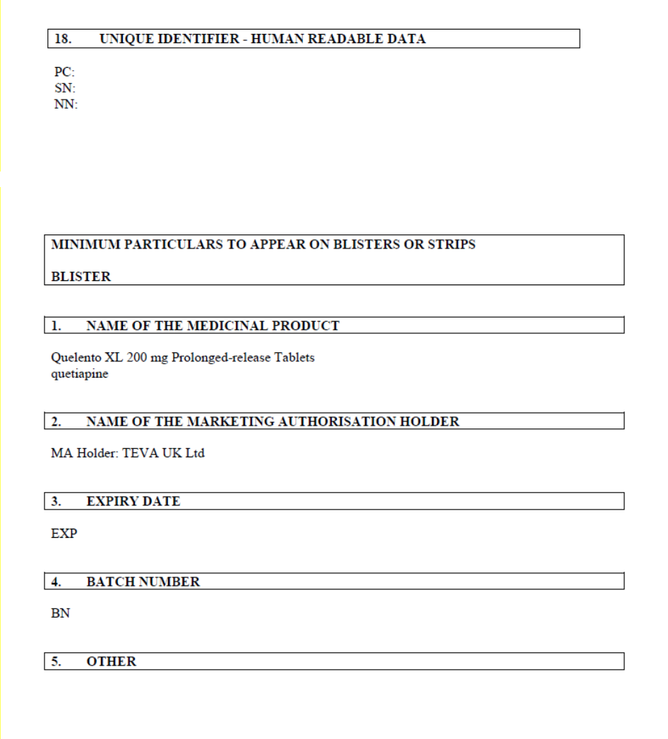 The current approved UK labelling Quelento/Sarparm XL 50, 200, 300 and 400 mg