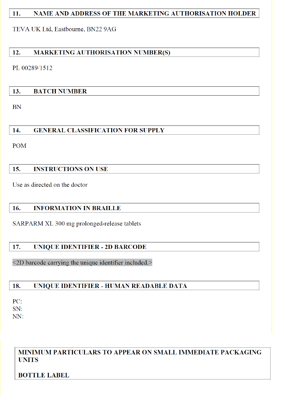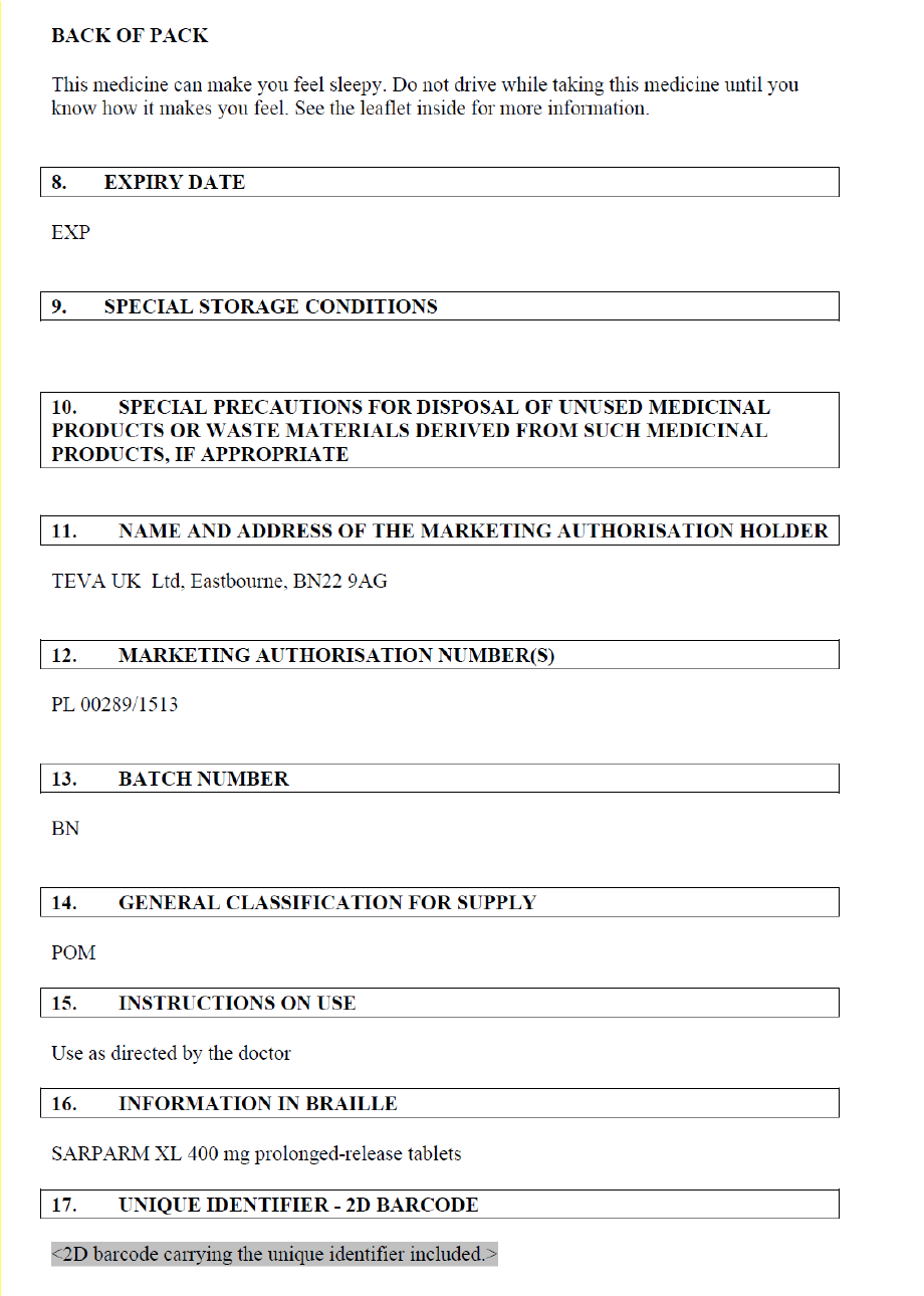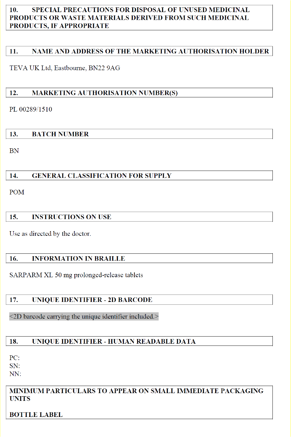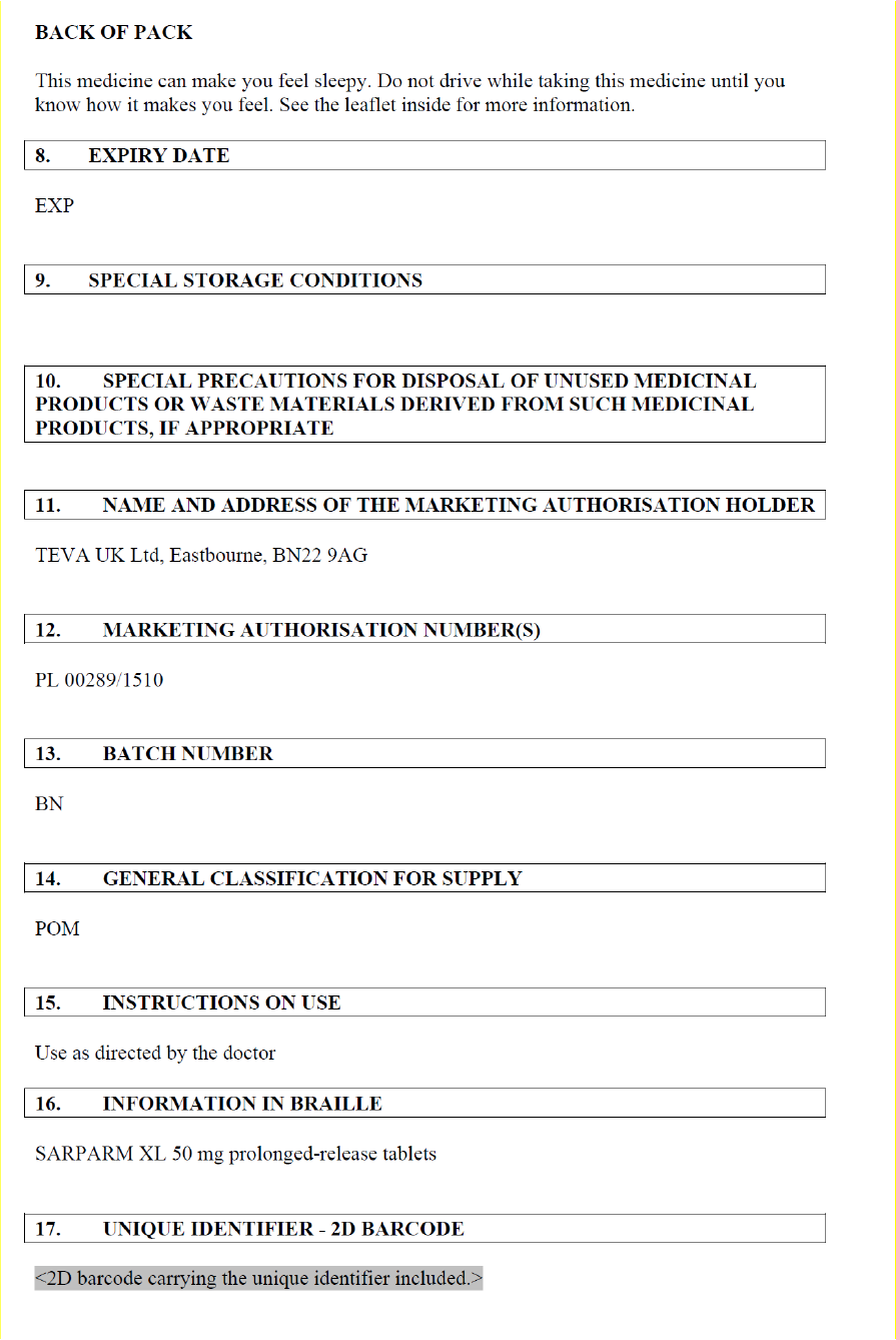 UK/H/4674/001-4/DC) and to Sarparm XL 50 mg Prolonged-release Tablets (PL 00289/1510-13;