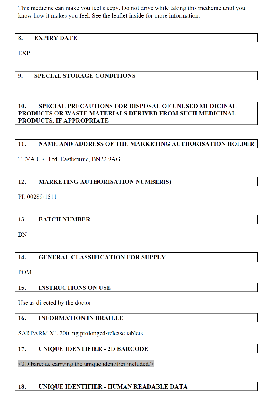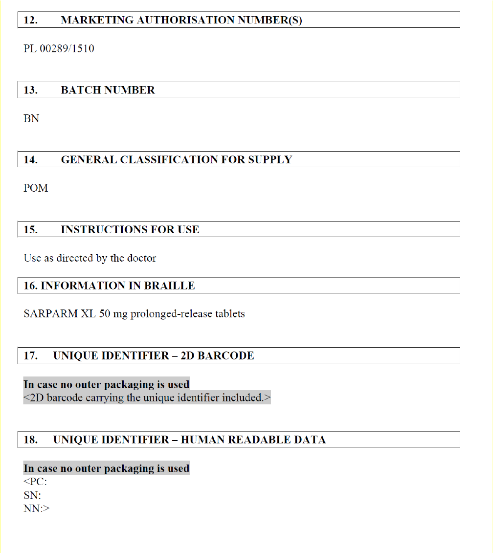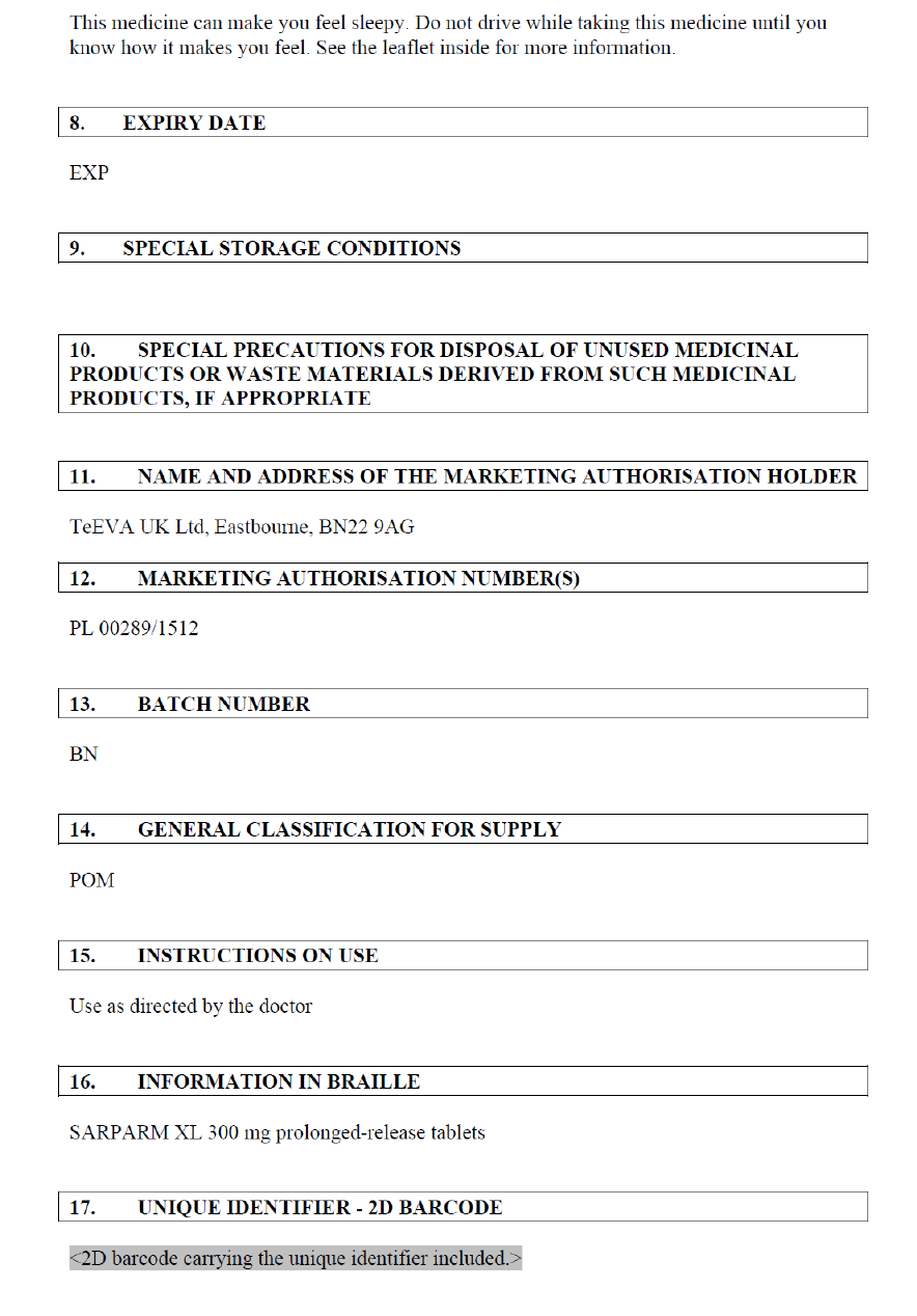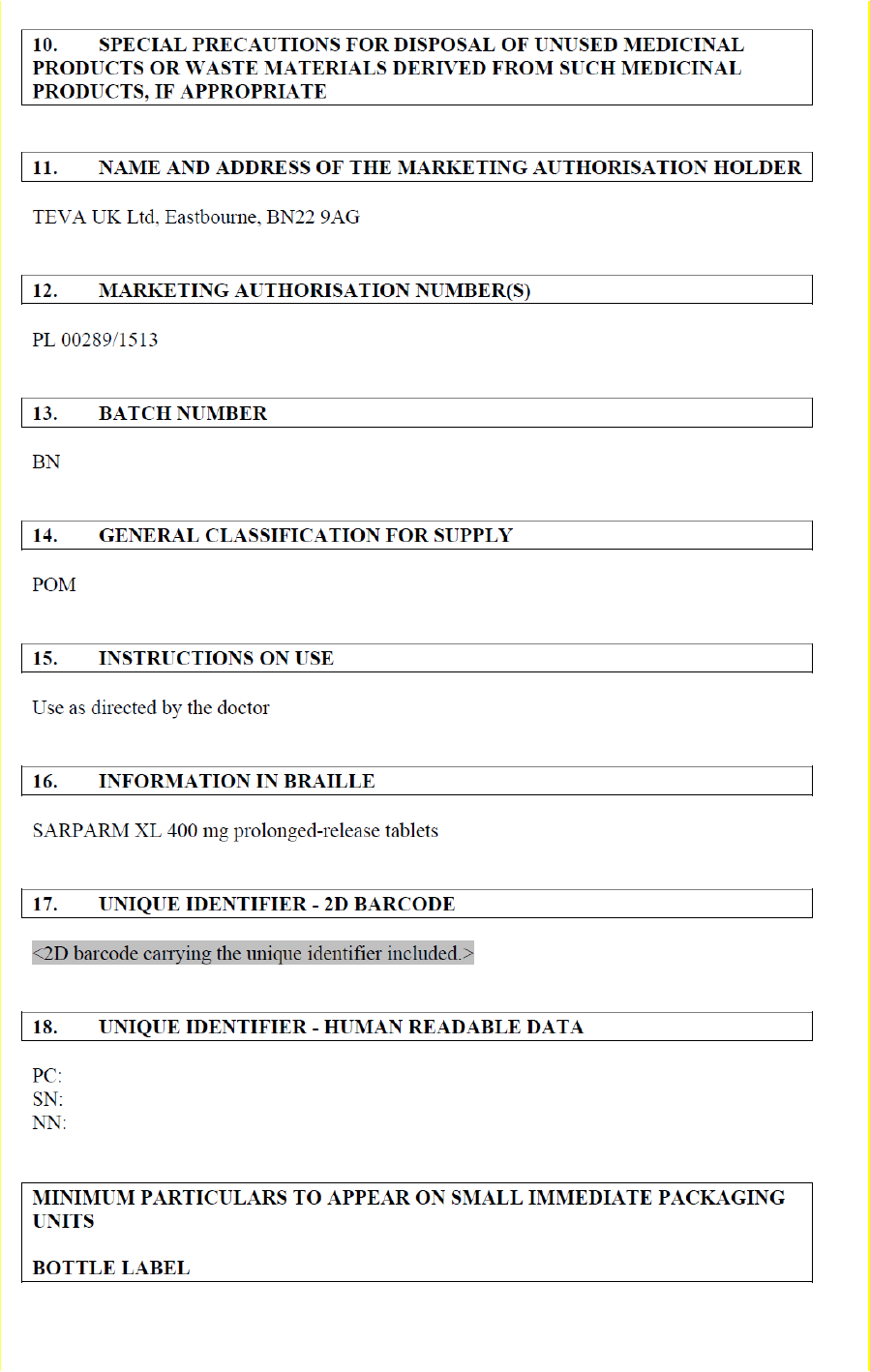 UK/H/4674/001-4/DC) and to Sarparm XL 50 mg Prolonged-release Tablets (PL 00289/1510-13;
