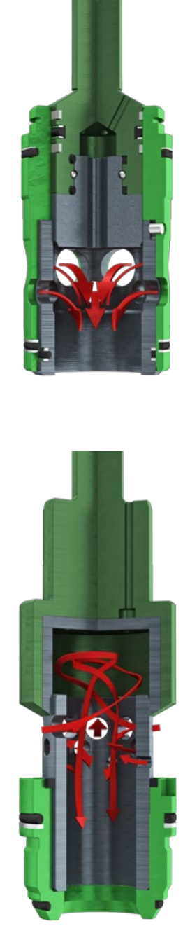 the flow on the internal diameter of the ported cage. The ports in the cage are sized and