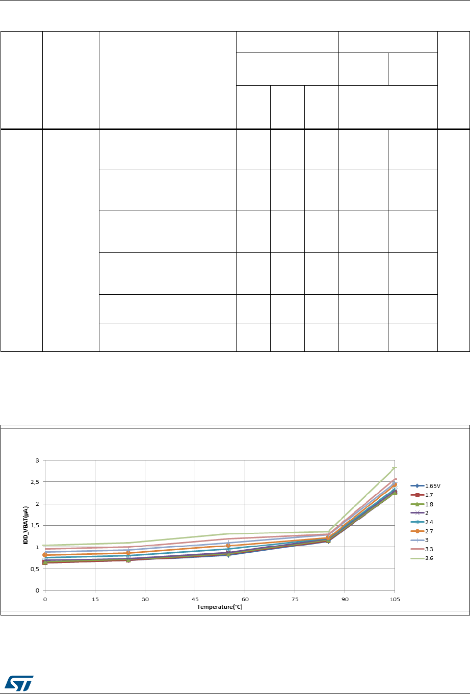 - Table 29. Typical and maximum current consumptions in VBAT mode