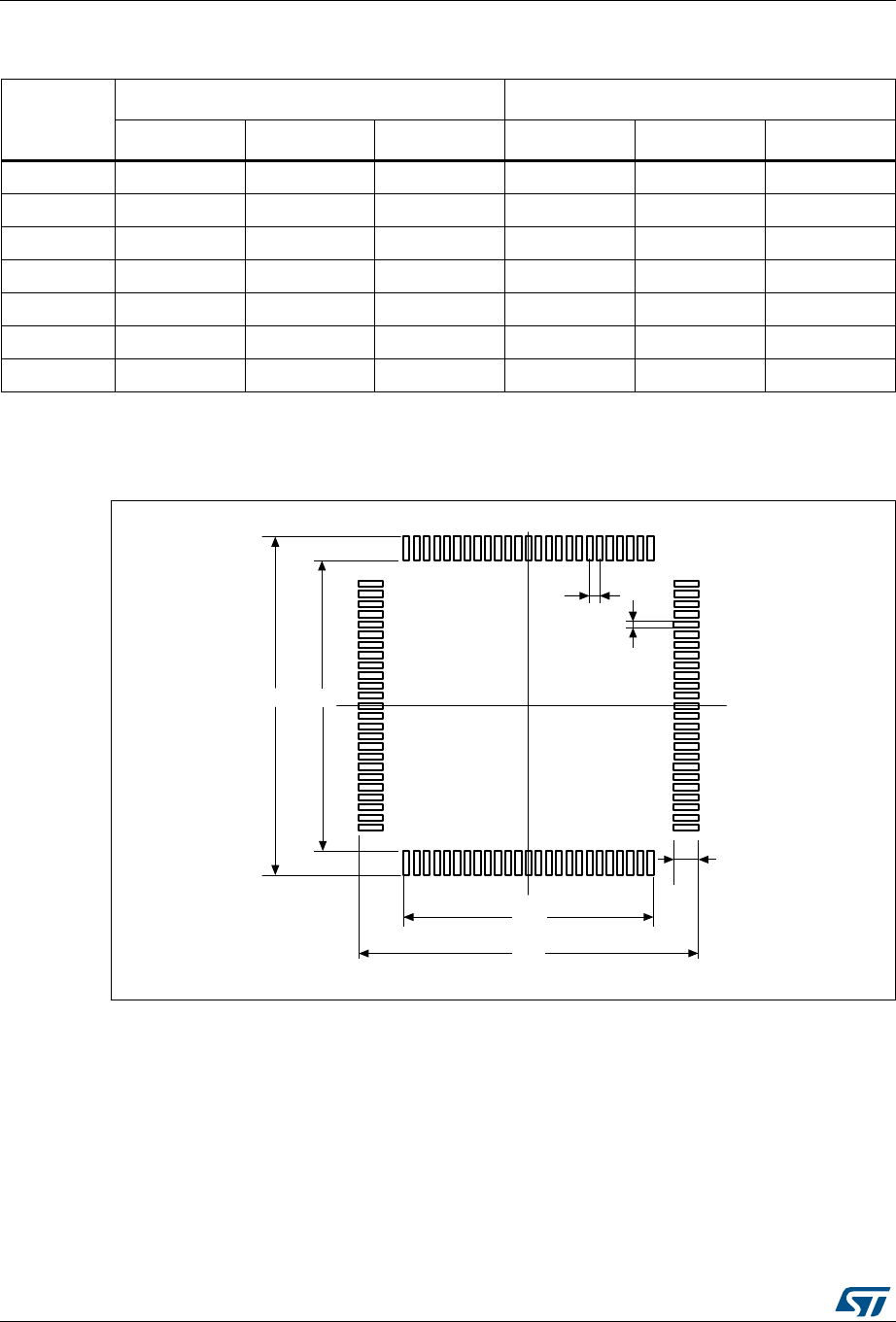 –Table 109: LQPF100, 14 x 14 mm 100-pin low-profile quad flat