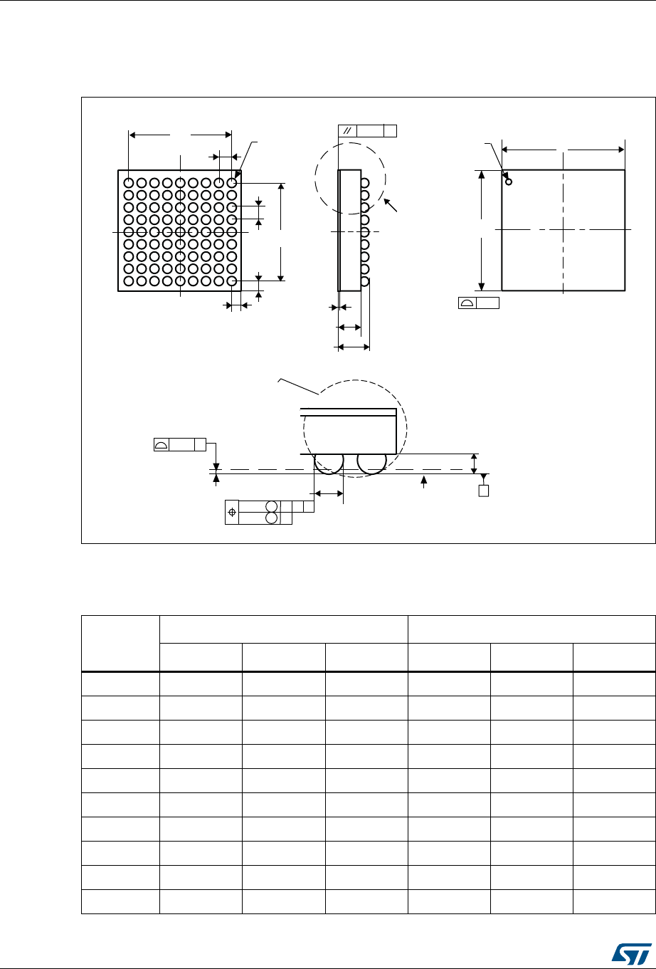 –Figure 77: UFBGA144 - 144-ball, 7 x 7 mm, 0.50 mm pitch, ultra fine