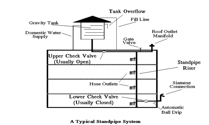 delivers water from the tank through the standpipe system without the use of pumping equipment.