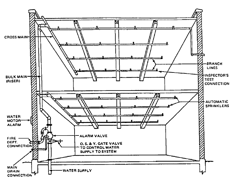 A one source automatic wet pipe sprinkler system shall be provided in every non-fireproof building in which