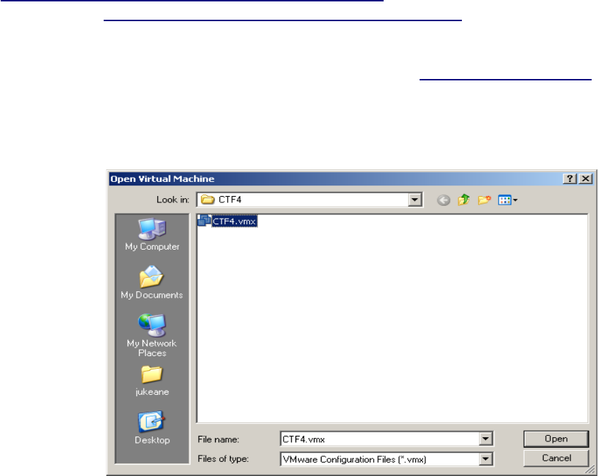 selecting 'CTF4.vmx' from within the CTF4 folder: