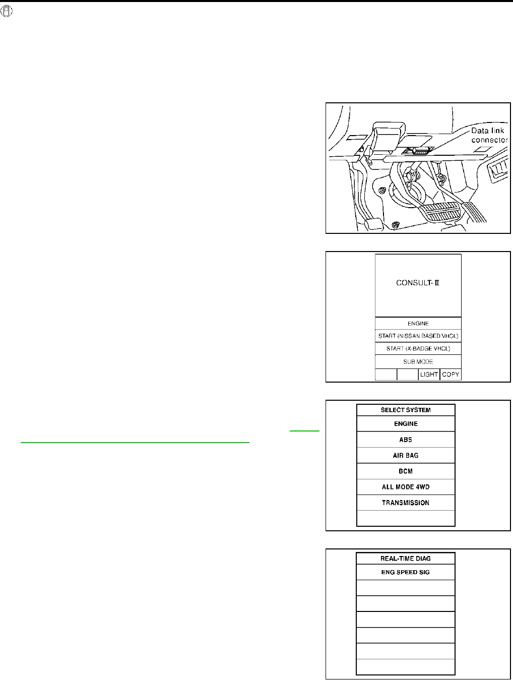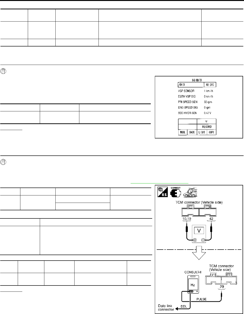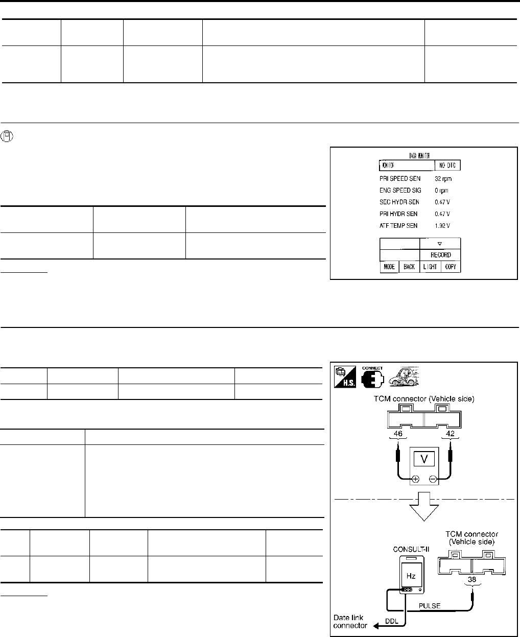 switch “OFF”, use the CONSULT-II pulse frequency measuring function.
