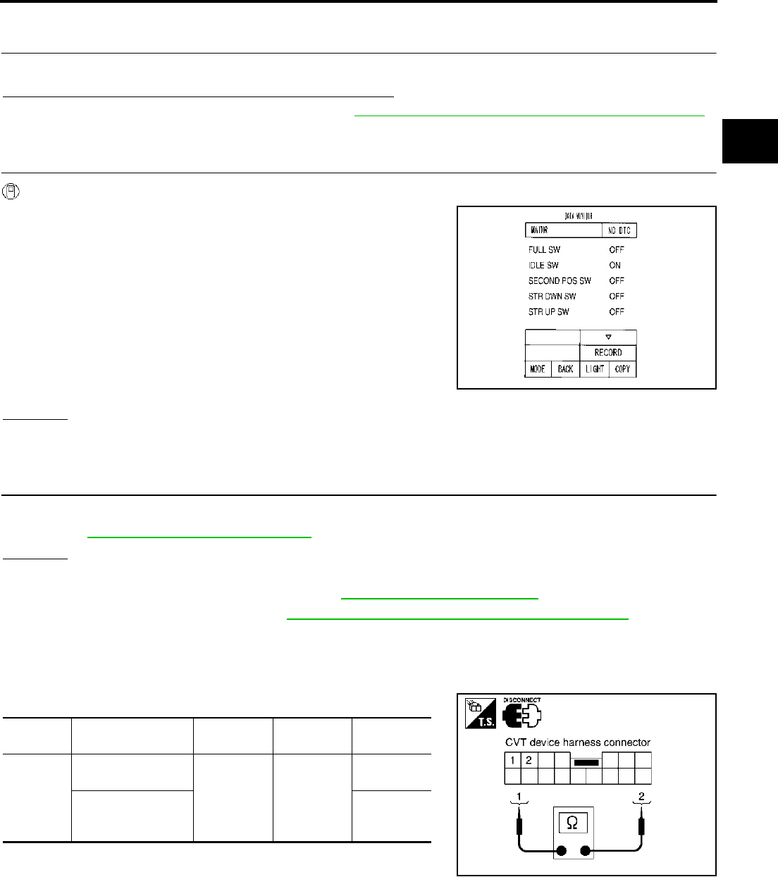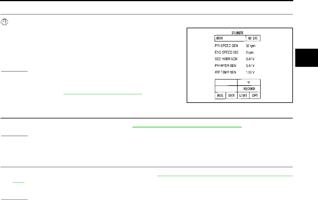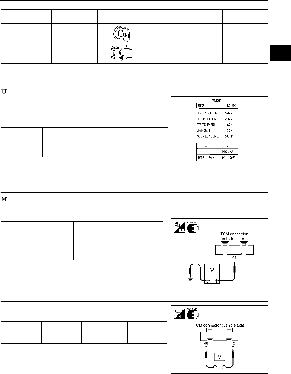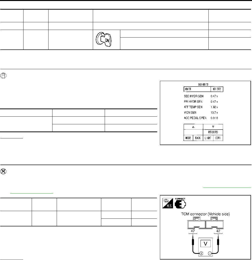 Name Condition CONSULT-II “DATA MONITOR” (Approx.) Resistance (Approx.)