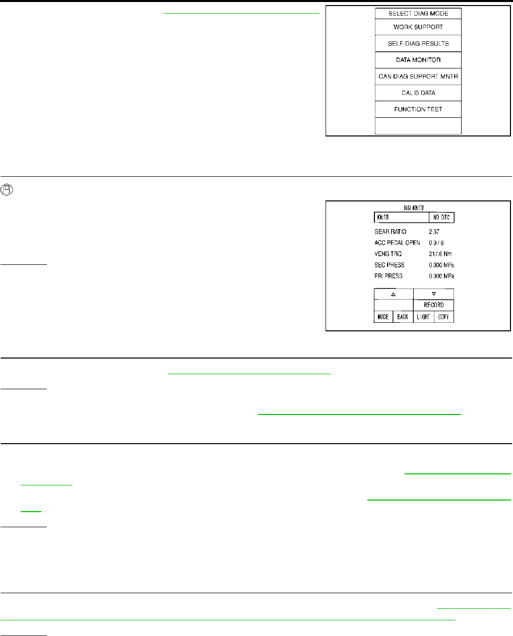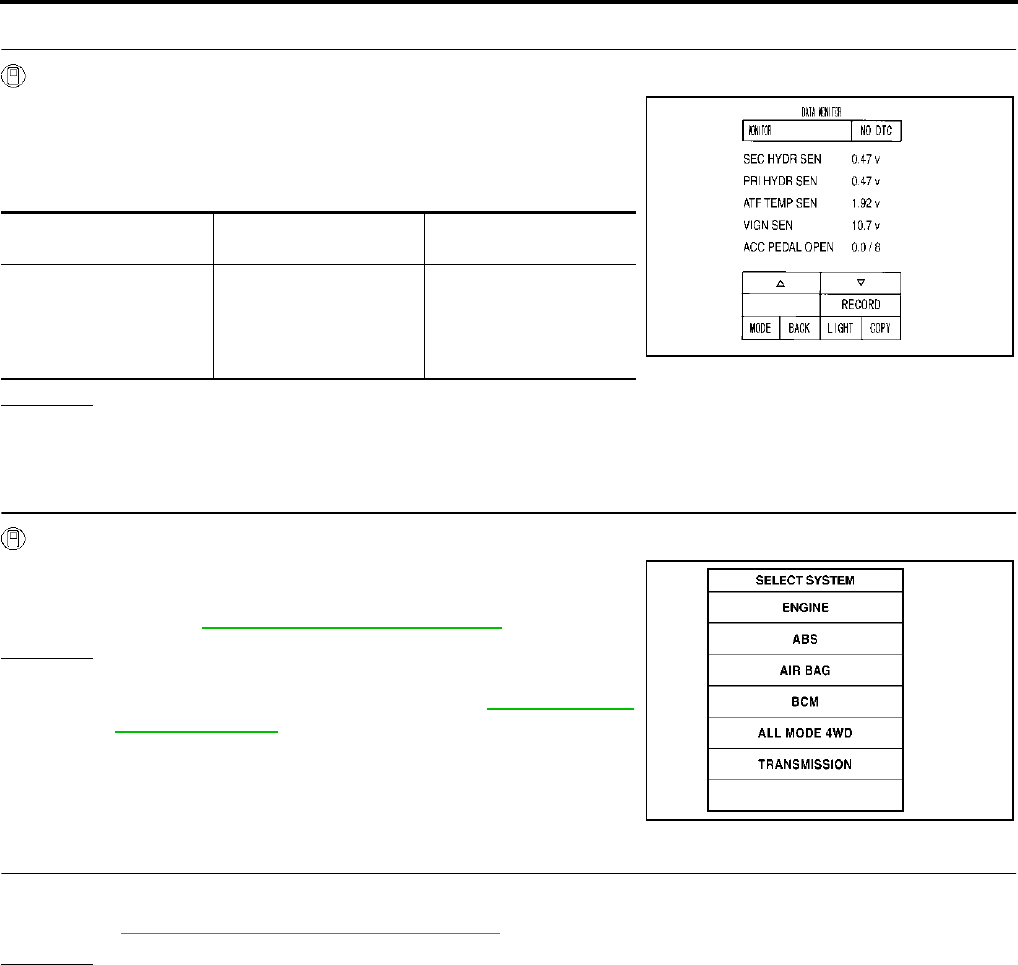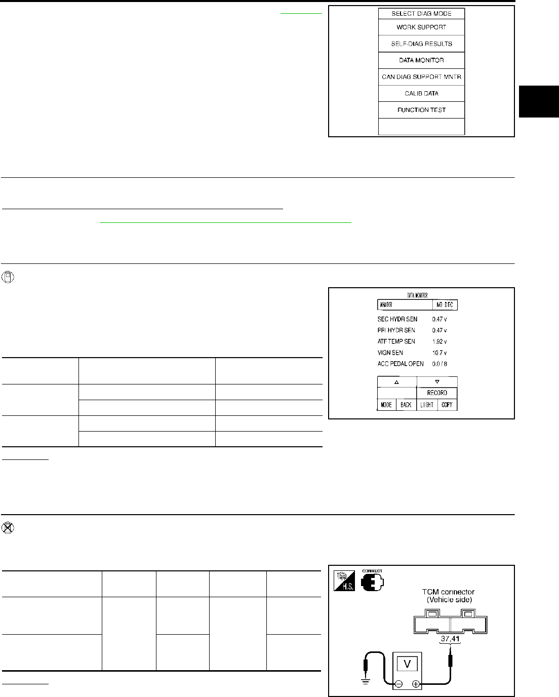 Name Condition CONSULT-II “DATA MONITOR” (Approx.) Resistance (Approx.)
