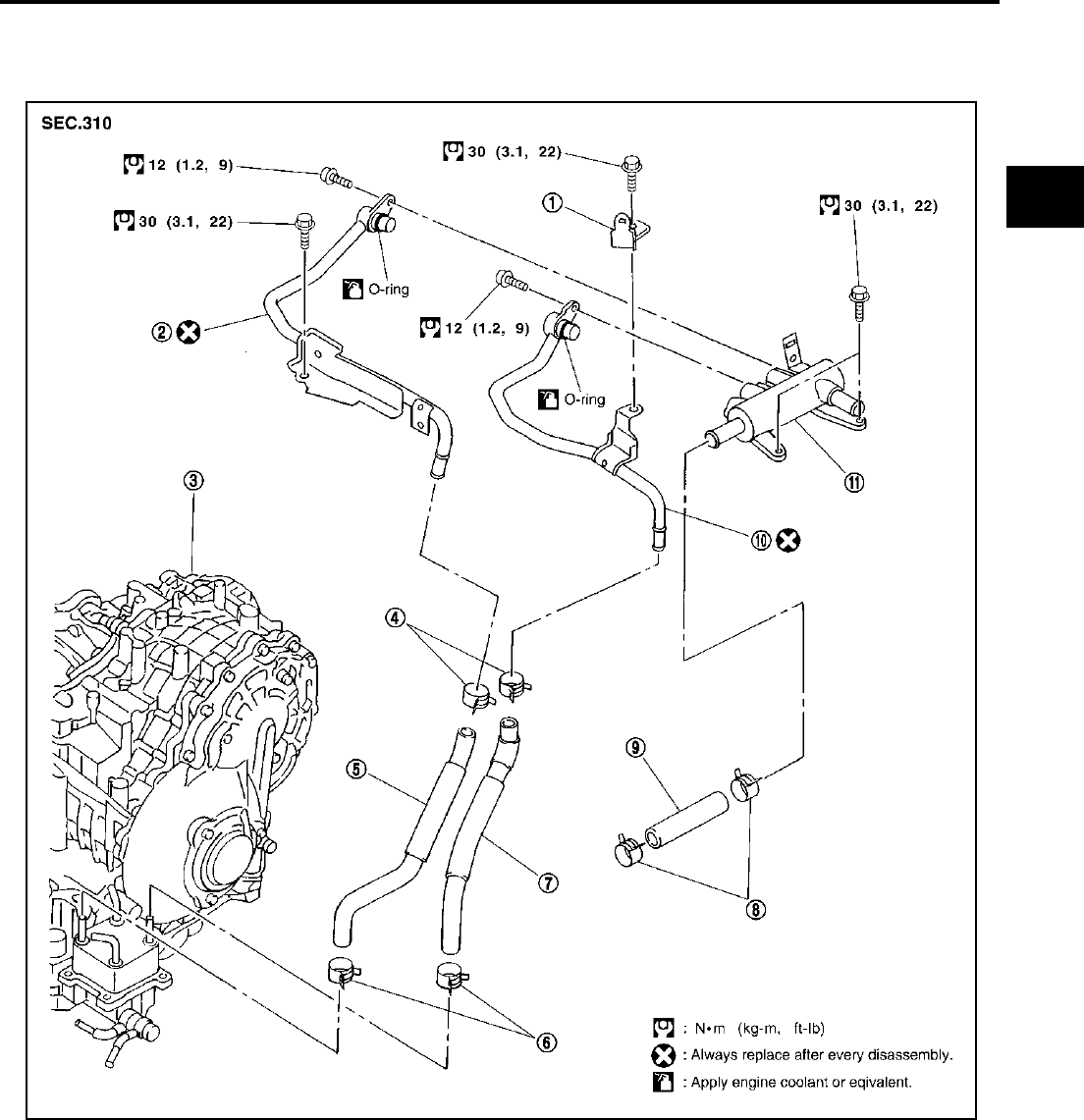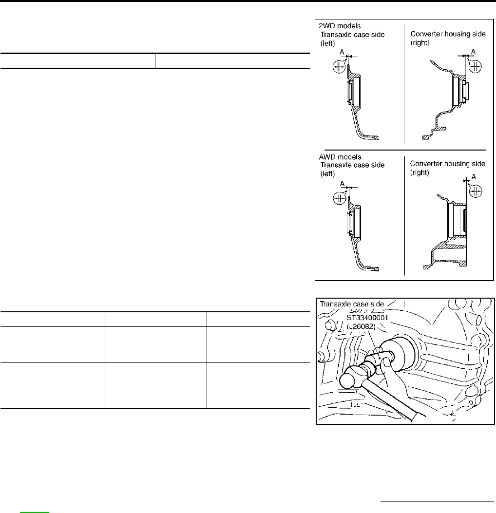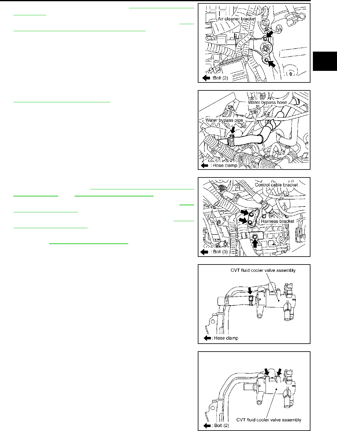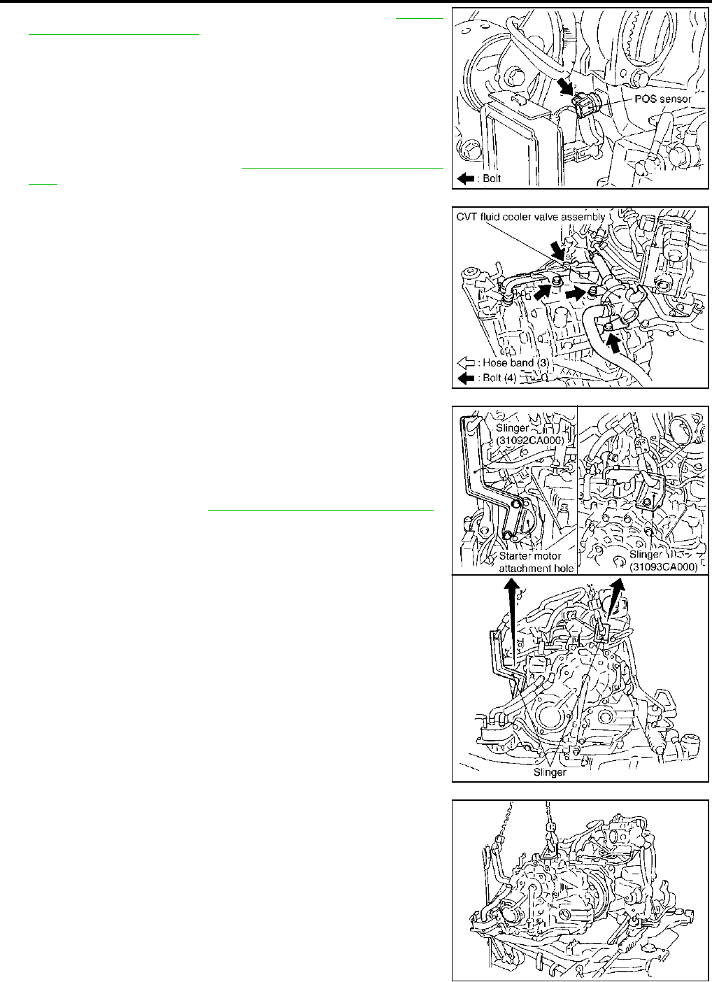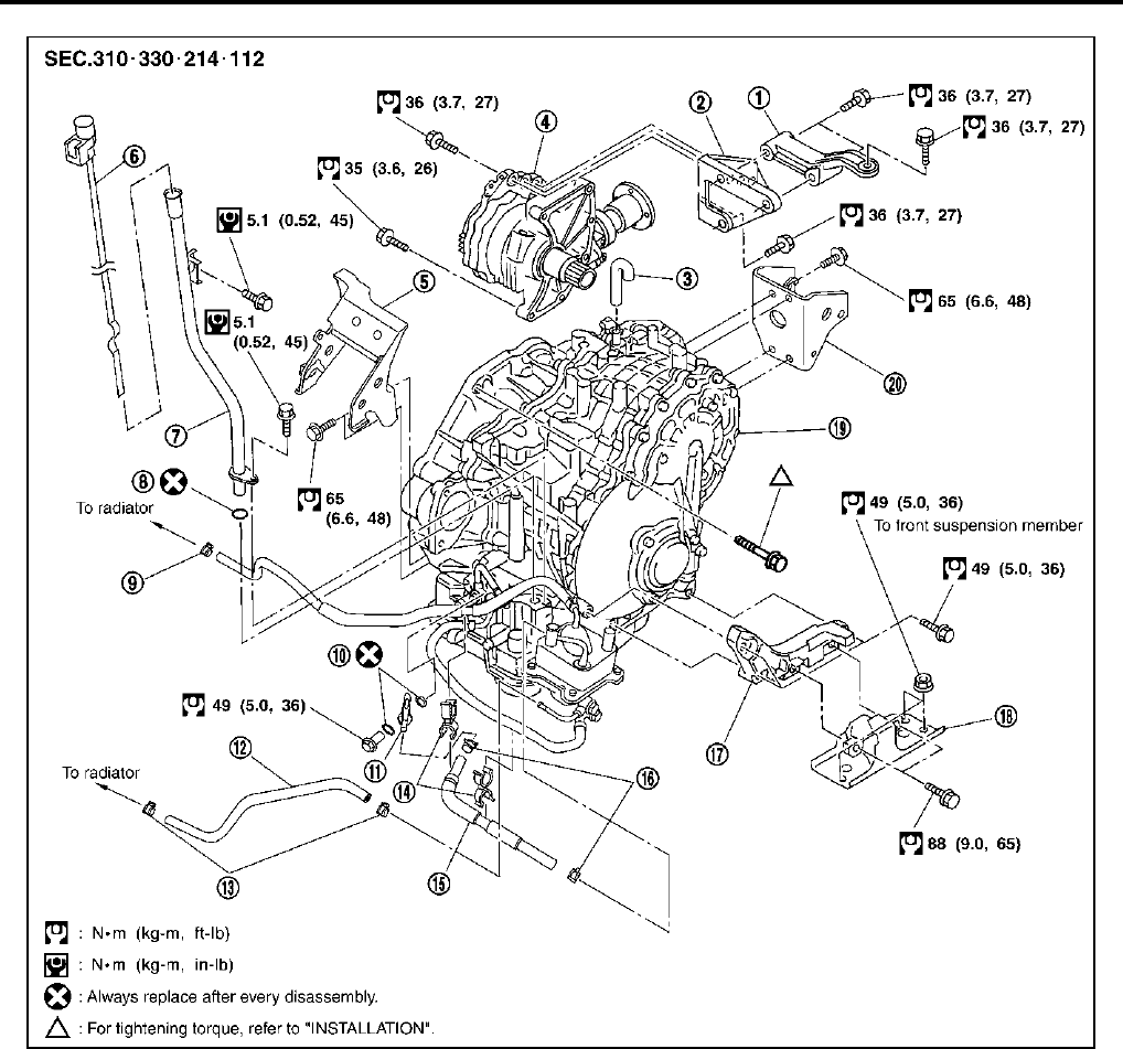 ●After completing installation, check for fluid leakage, fluid level, and the positions of CVT. Refer to CVT-14,