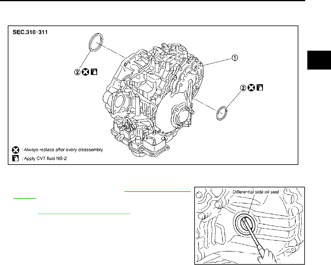 ●When replacing the CVT assembly, erase EEP ROM in TCM. Refer to CVT-8, "Precautions for TCM and