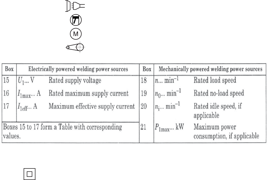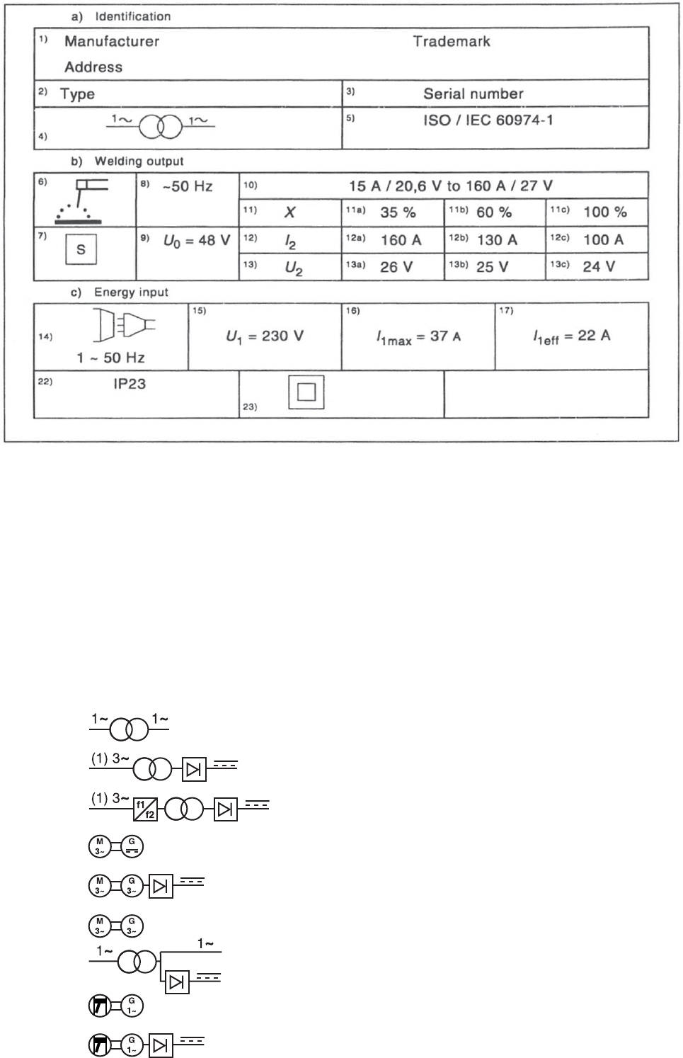 The following explanations refer to the numbered boxes shown in Figure 2.3 according to ISO/IEC 60974-1.