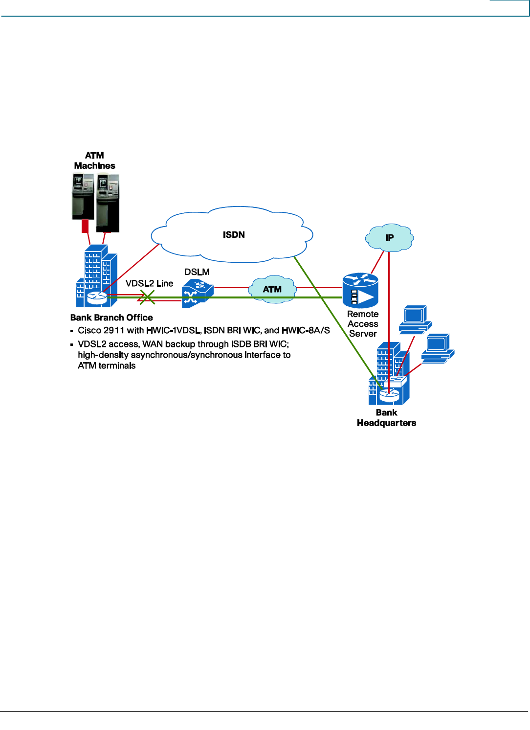 asynchronous/synchronous HWIC (HWIC-8A/S) is used as an interface to ATM machines. This scenario further