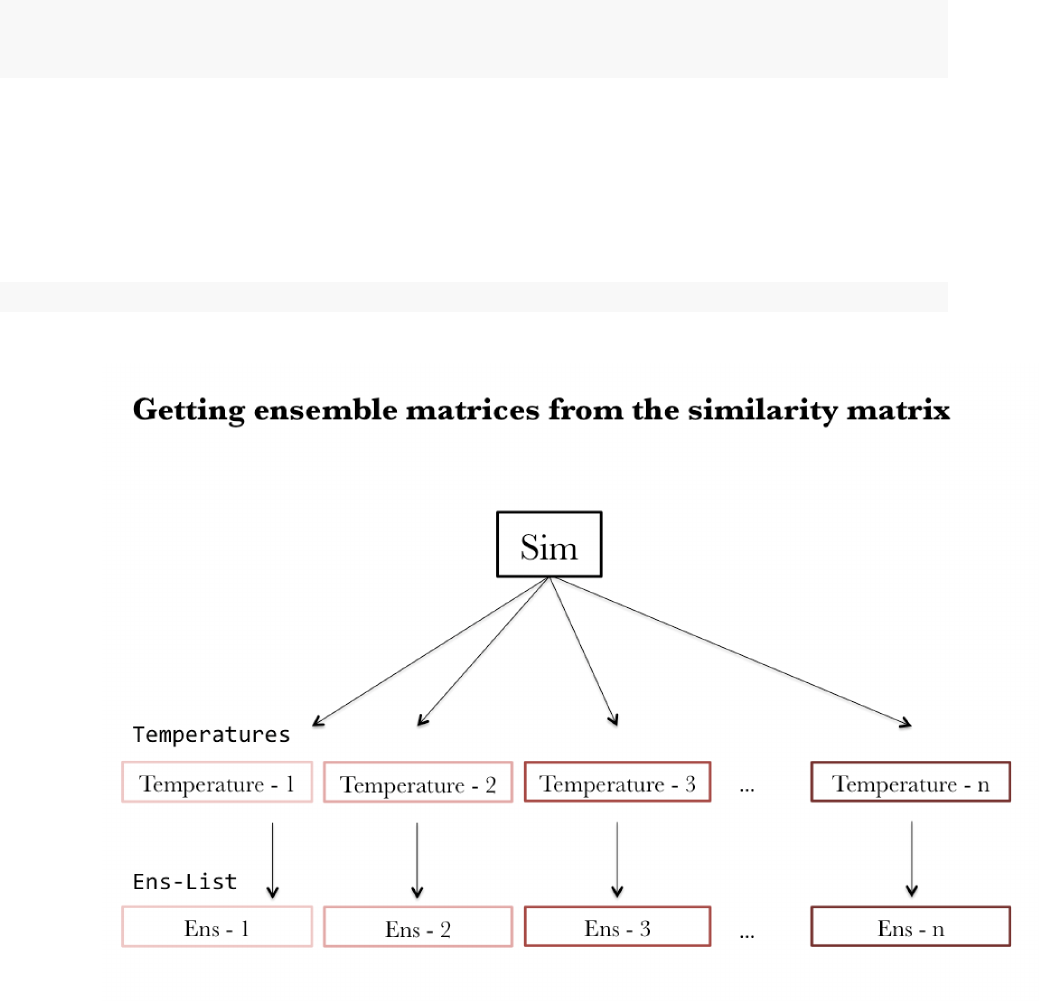 The process of transforming similarity matrix into a list of ensemble matrices is illustrated in the following