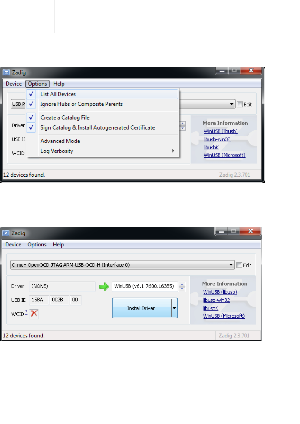 To apply WinUSB driver to Olimex and Digilent devices, just start application, make sure