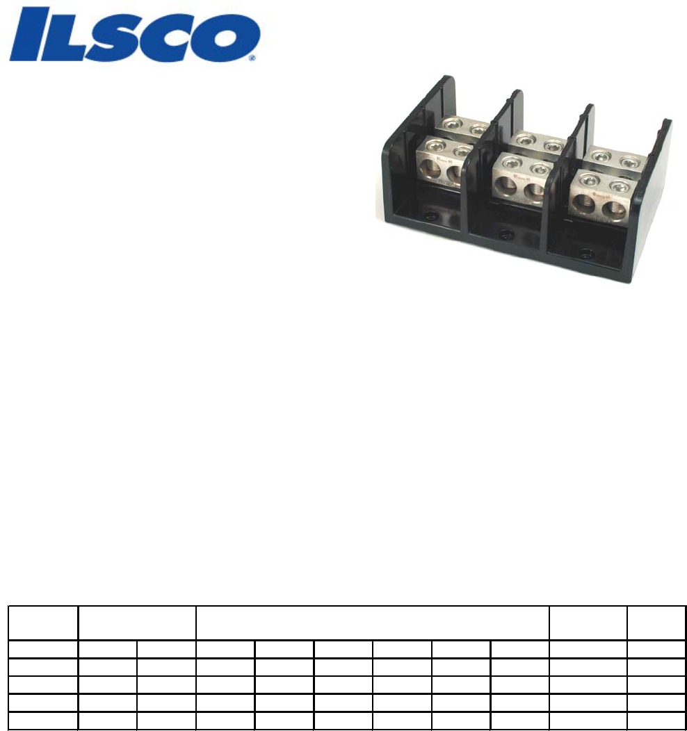 Instructions –Data Sheet PDH 22 350 X S Ilsco Reference Power Distribution Block Product Data Sheets