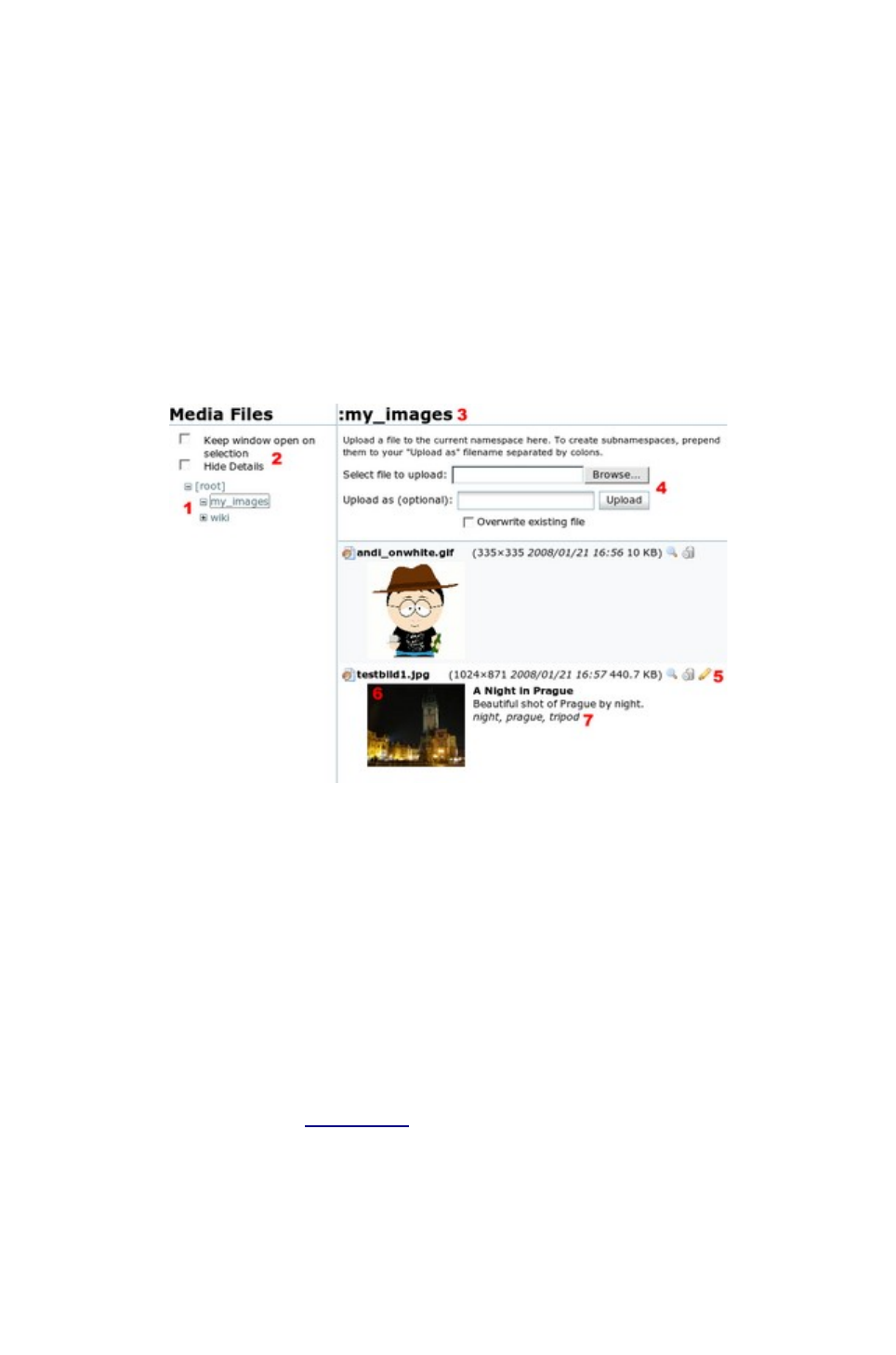 crea una página plugin:ejemplo aquí, en el wiki. Nota: no está permitido subir ficheros, así