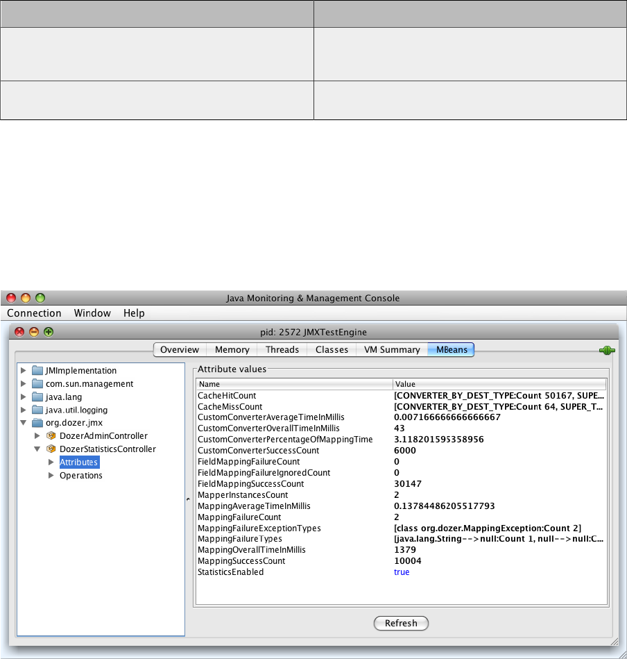 dozer: Dozer JMX MBean [org.dozer.jmx:type=DozerStatisticsContro