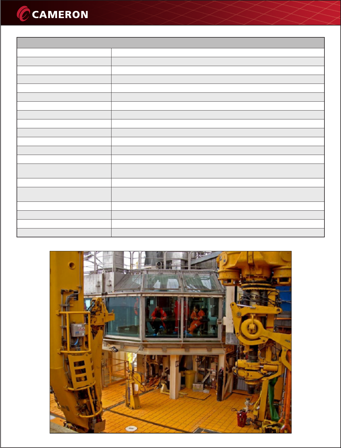 drillfloor layout and requirements. Cameron engineers