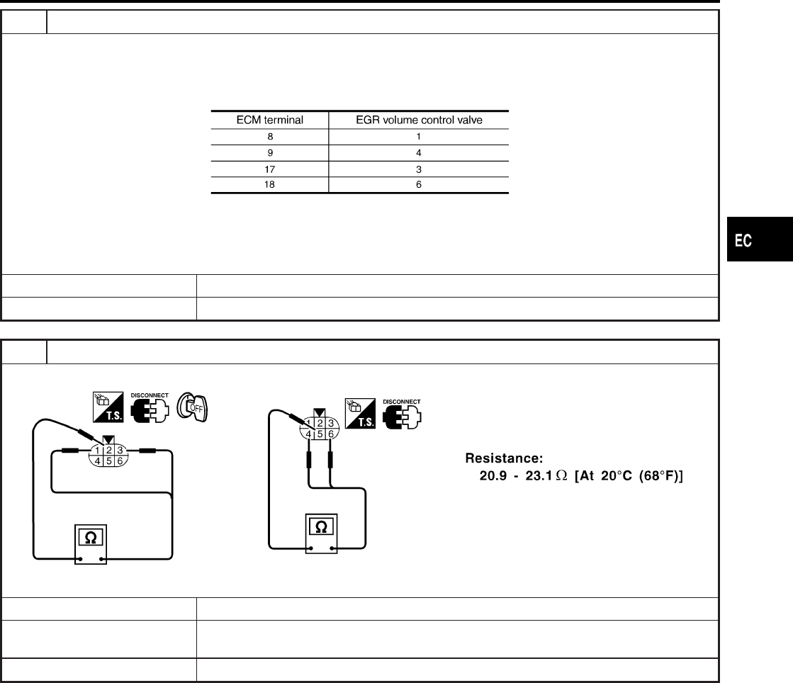 Between terminals 1-2, 2-3, 4-5 and 5-6 20.9 - 23.1