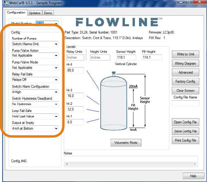 EchoPod® is configured through WebCal®, a PC software program. Configuration of your sensor should be