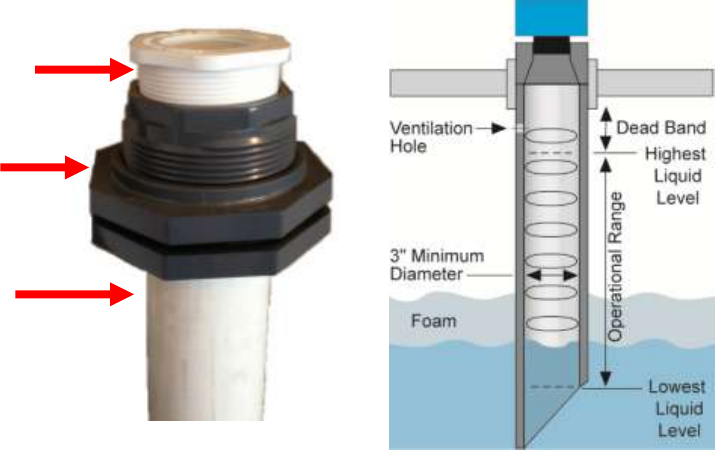 The pipe length should run the measurement span and the bottom of the pipe should remain submerged at all
