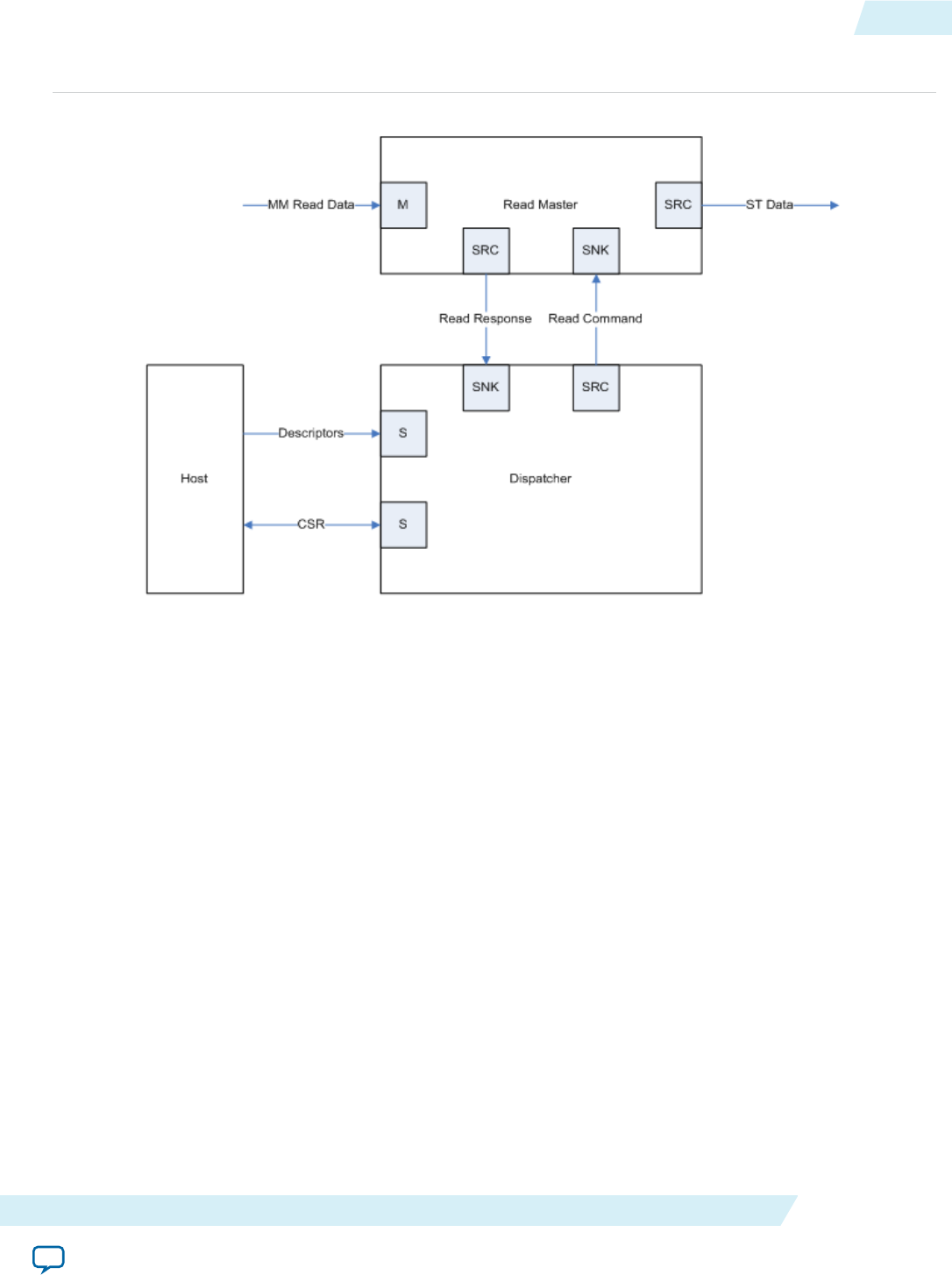 Both ST data source and ST data sink interfaces support a ready latency of zero.
