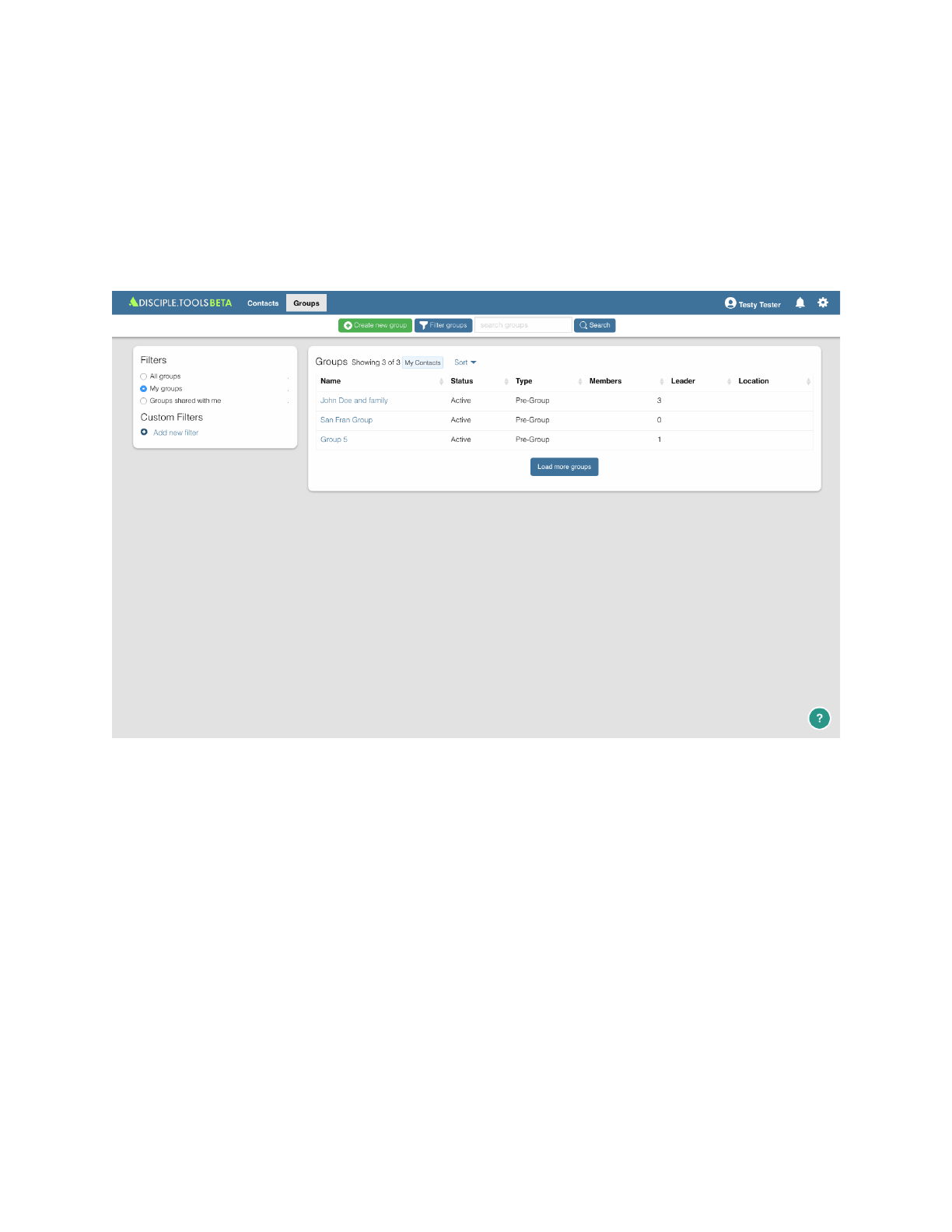 2. This is the Groups List Page which functions very similarly to the Contacts List Page as