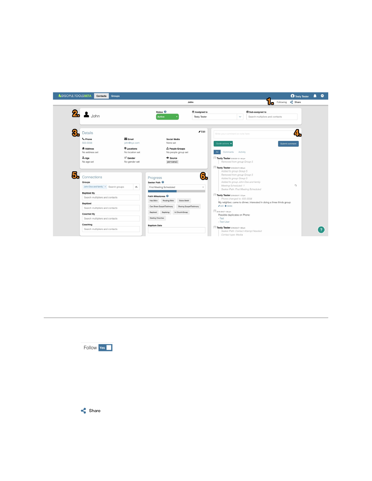 3. This is John’s Contact Record. Disciple.Tools has been designed to help you keep your