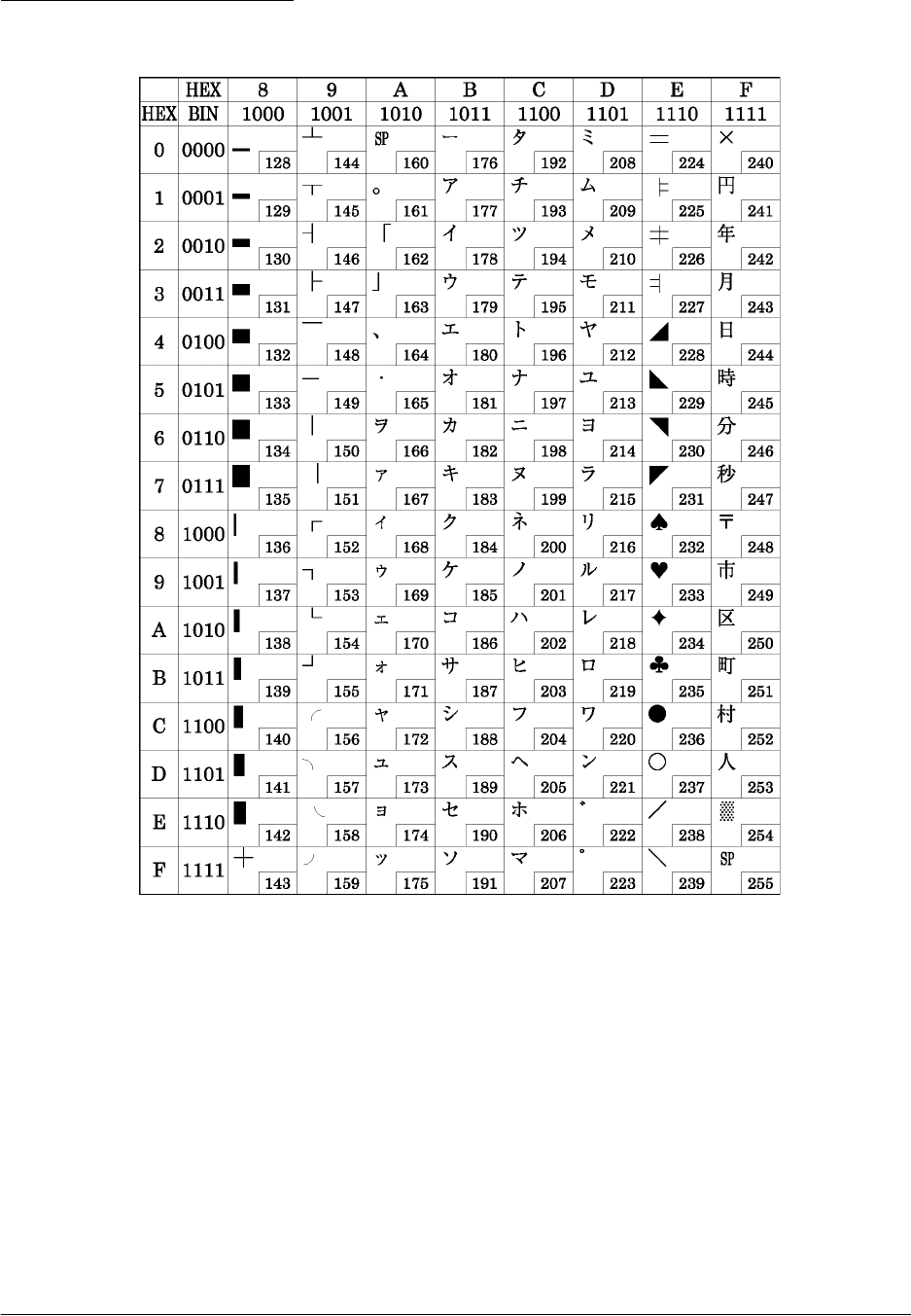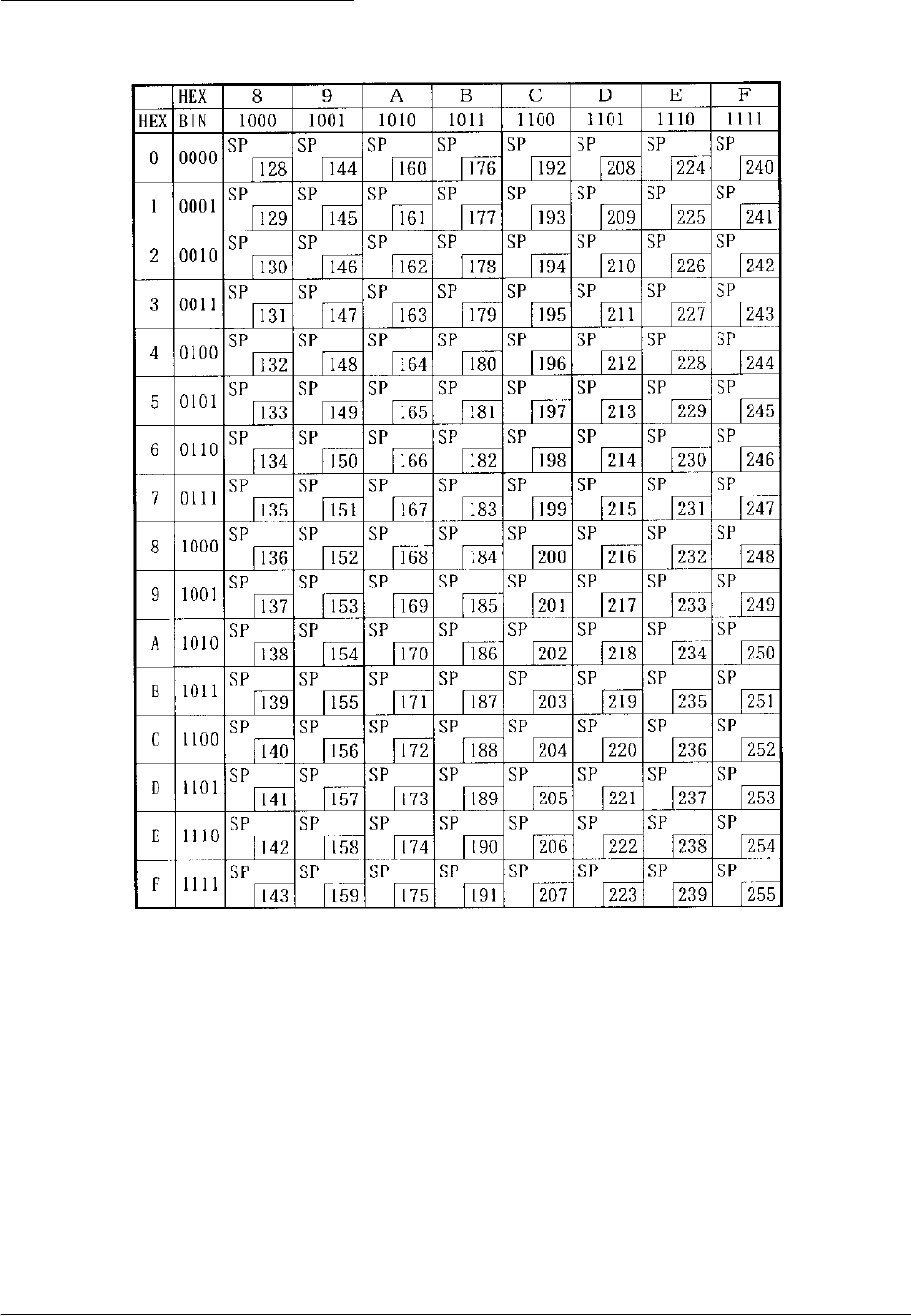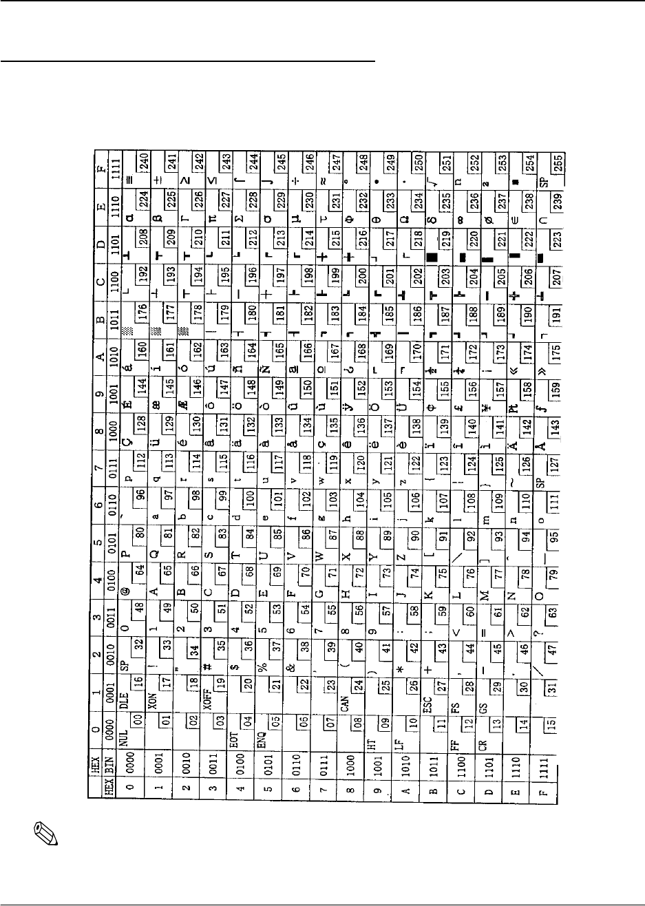 The character code tables show only character configurations. They do not show the actual print pattern.