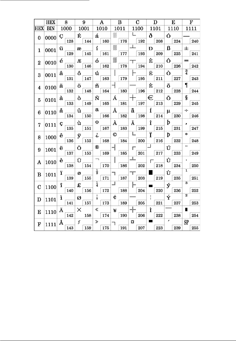 C.1 Page 0 (PC437: USA, Standard Europe)