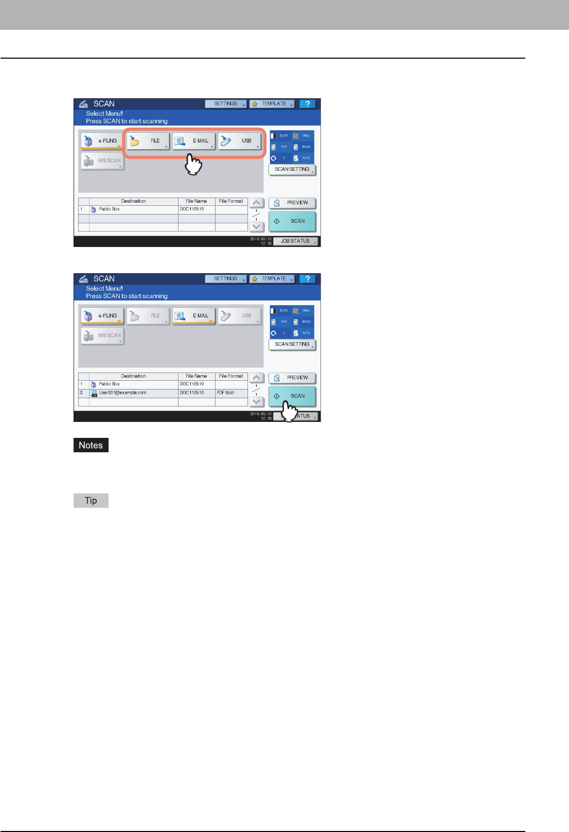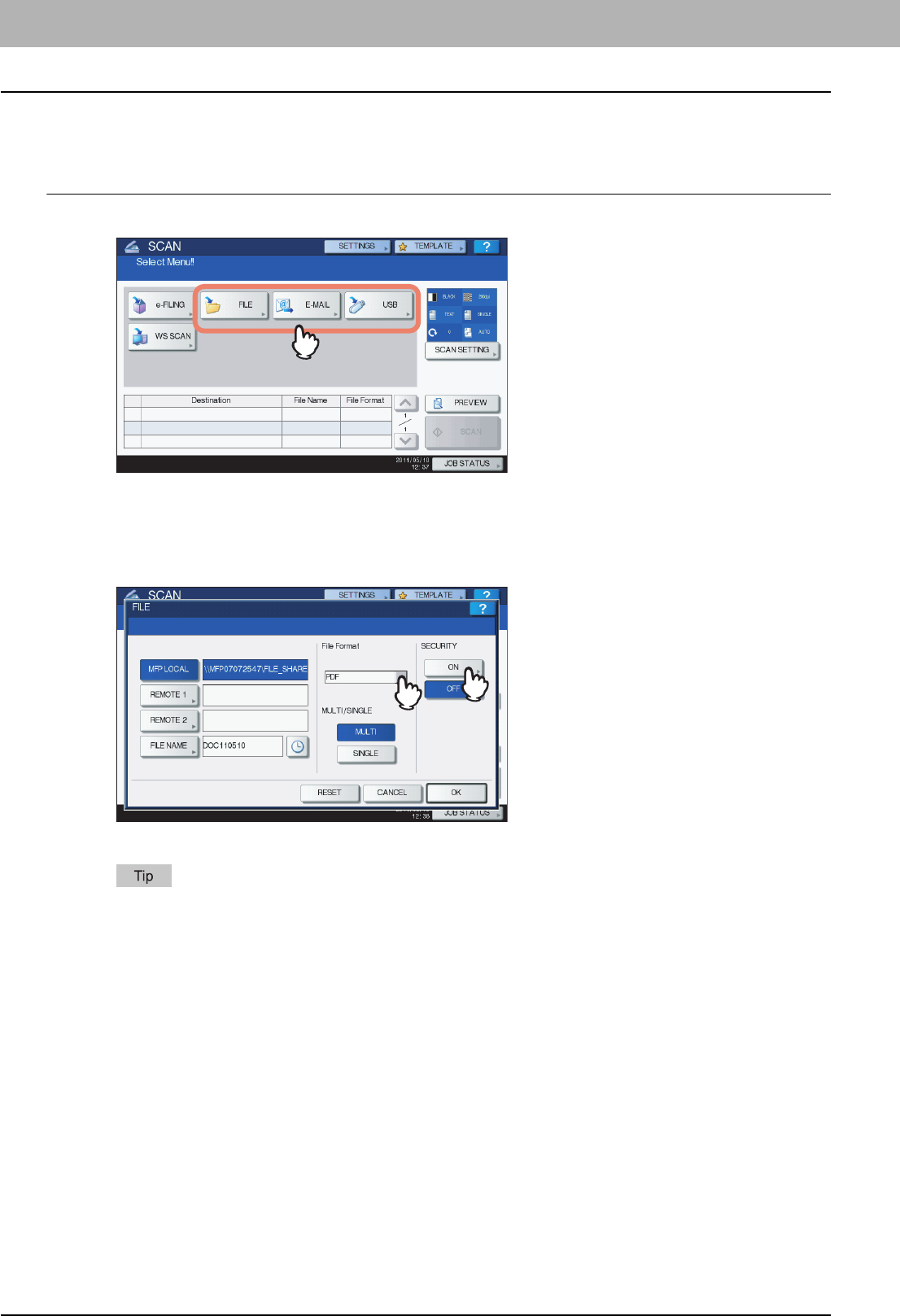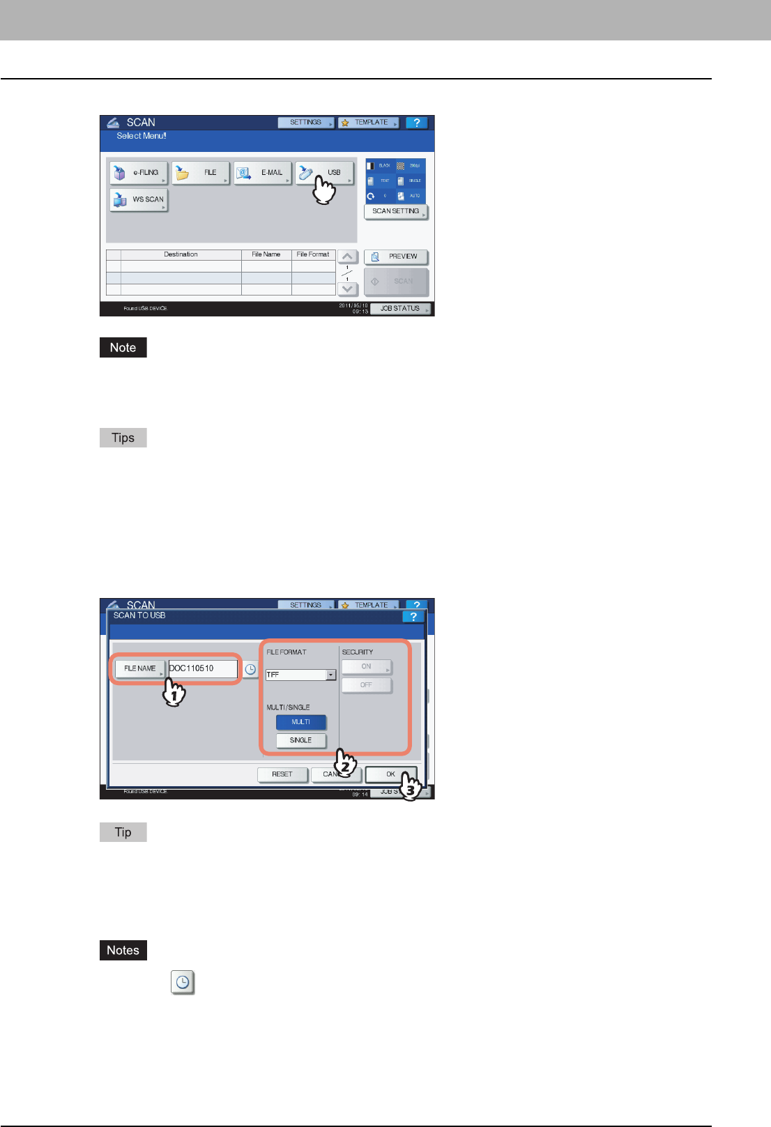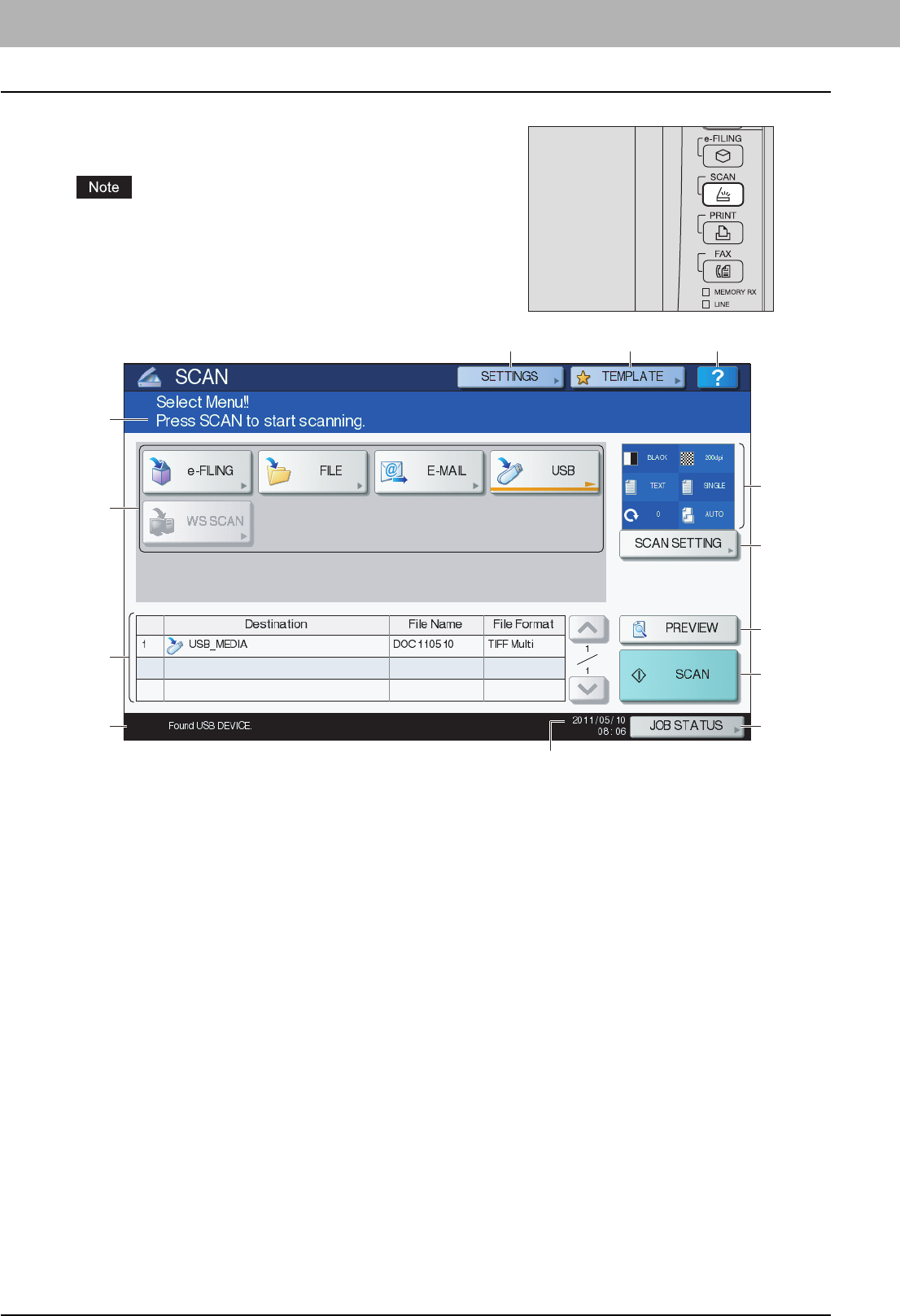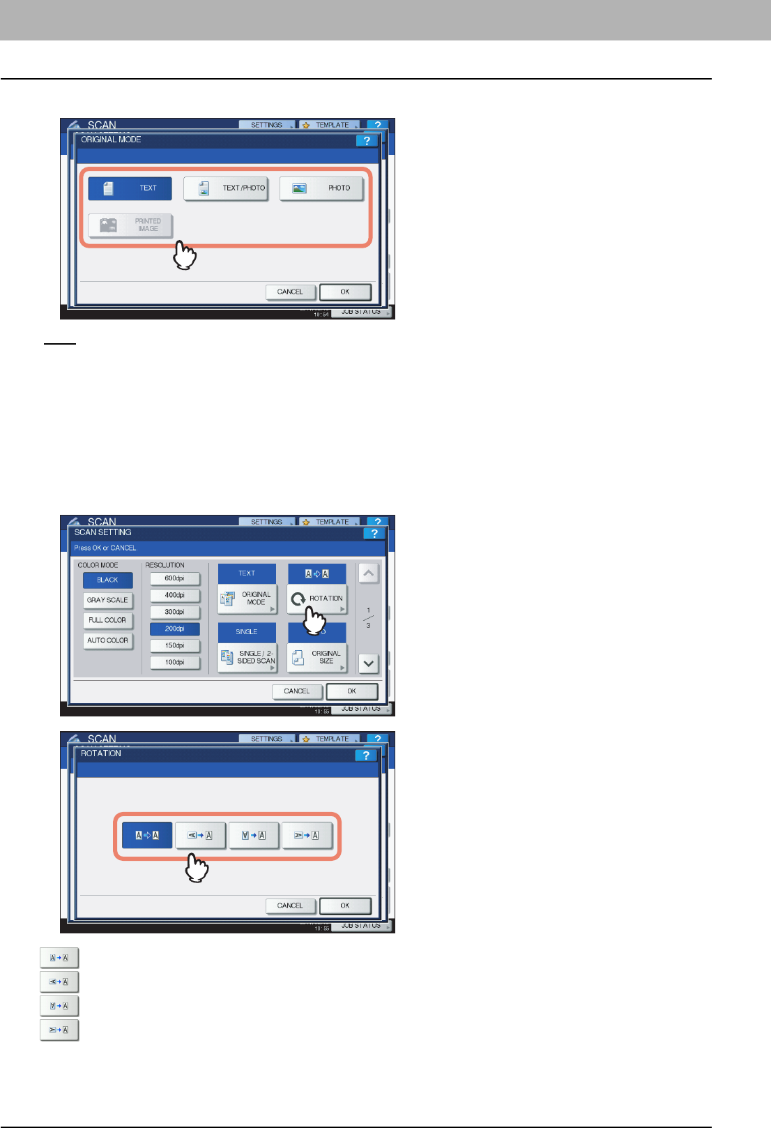 yThe details on the touch panel menus may differ depending on the operating environment such as whether options are