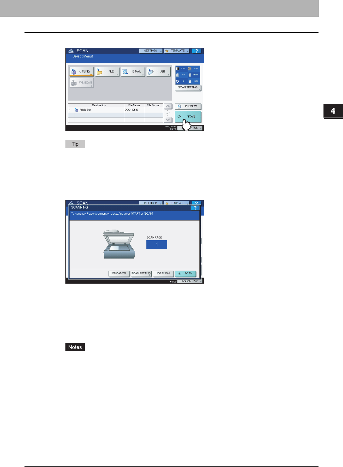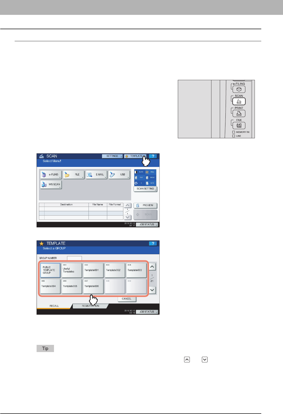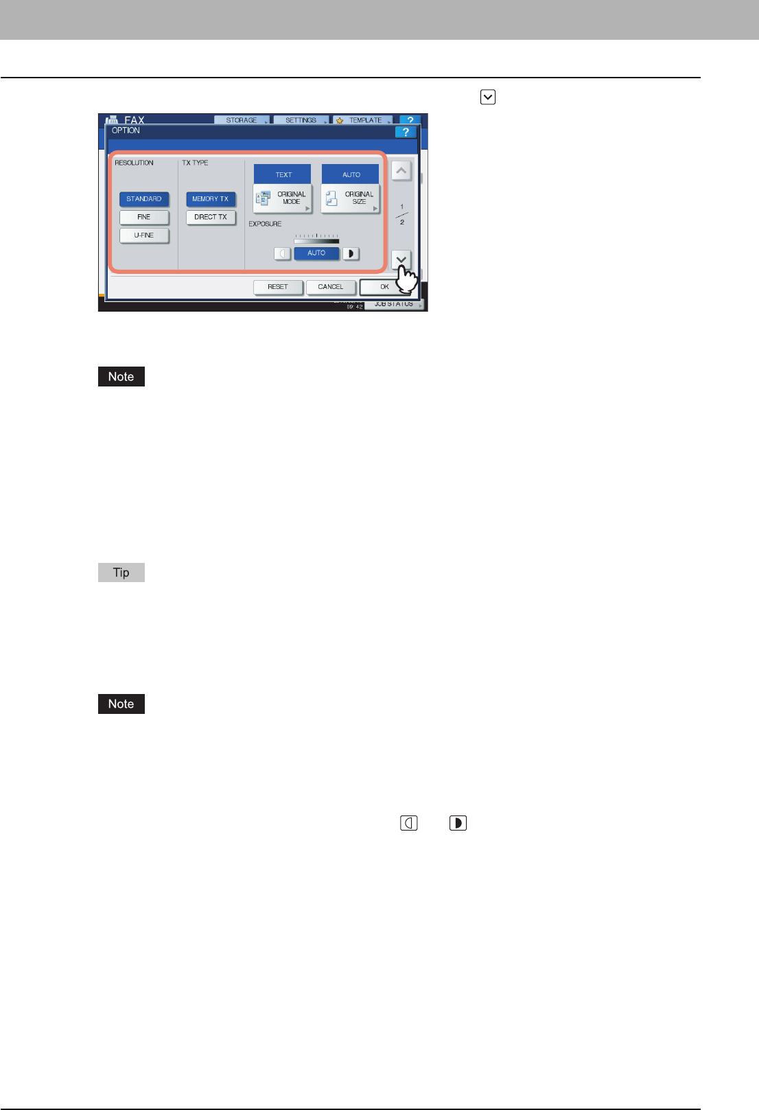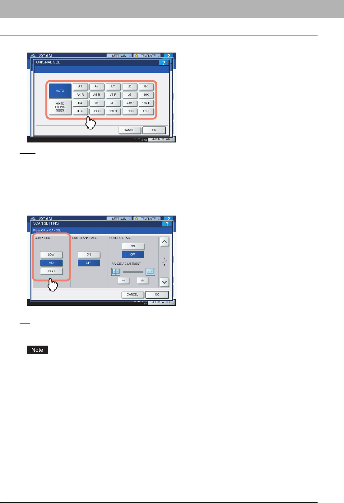 yThe details on the touch panel menus may differ depending on the operating environment such as whether options are