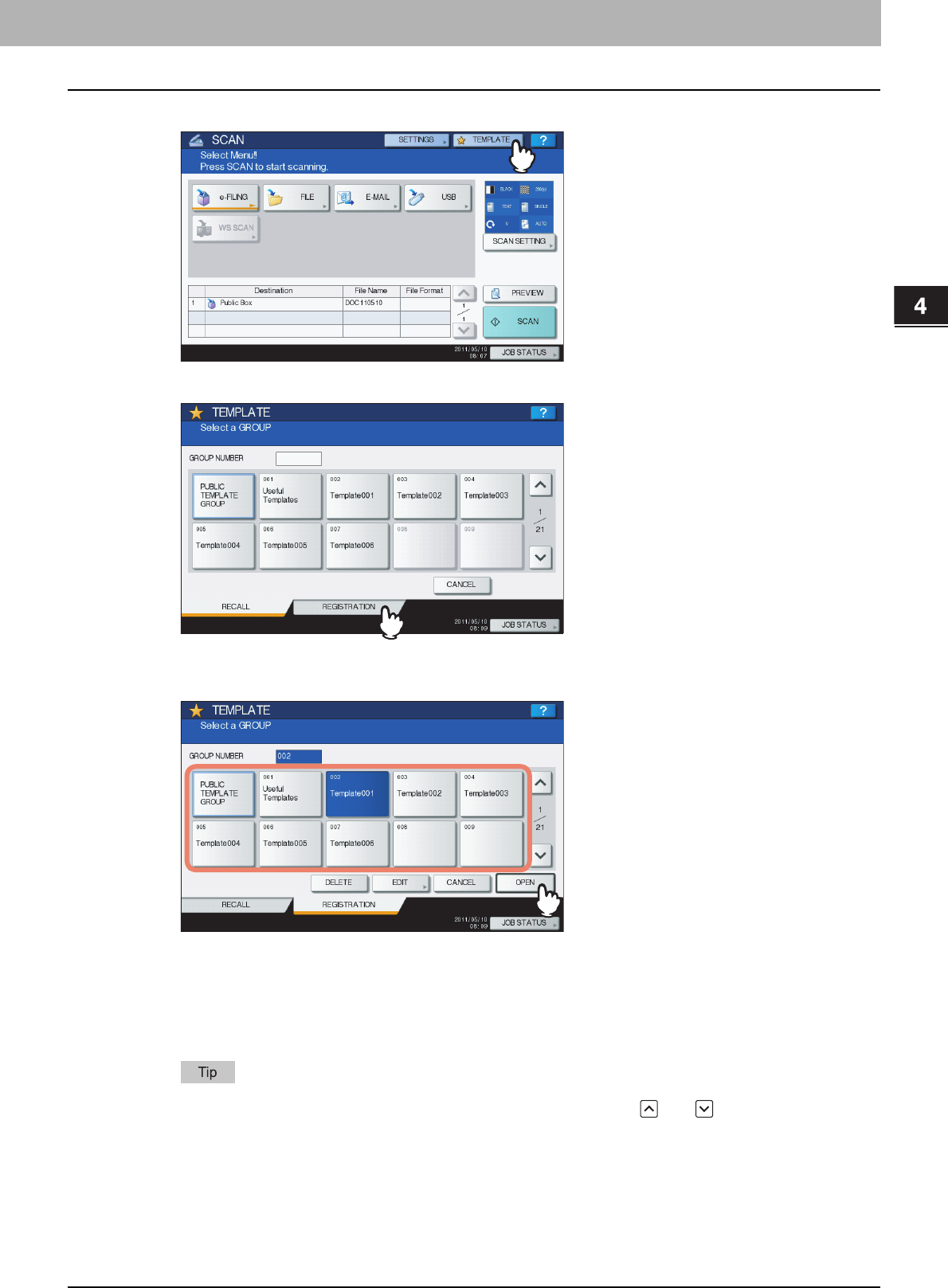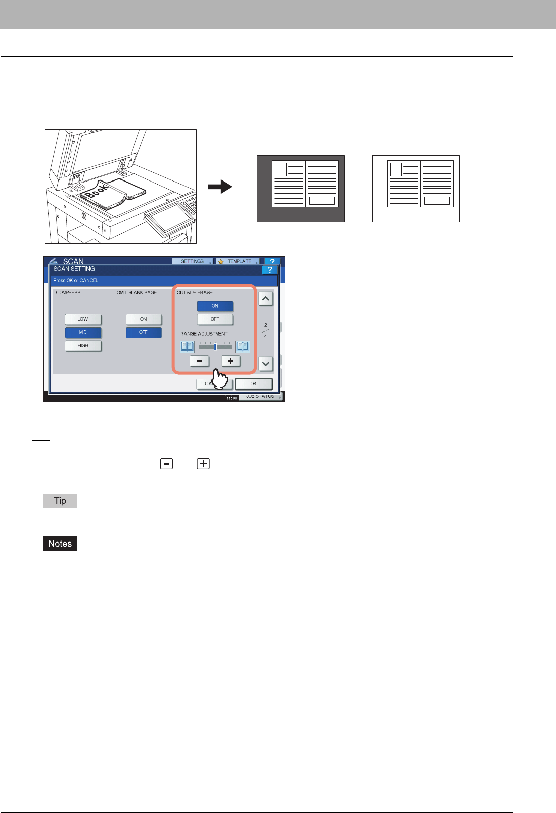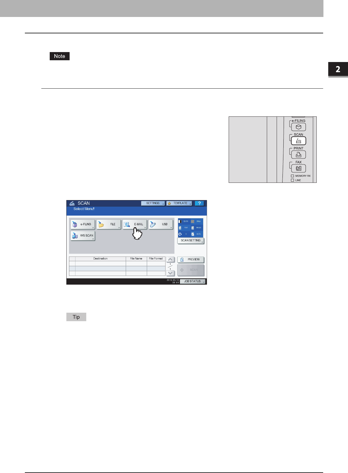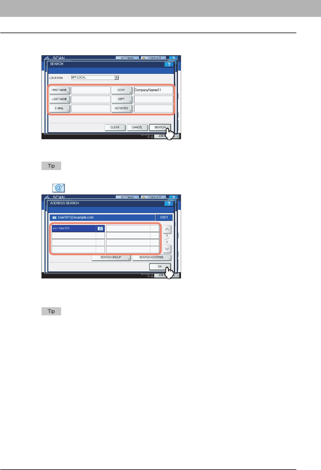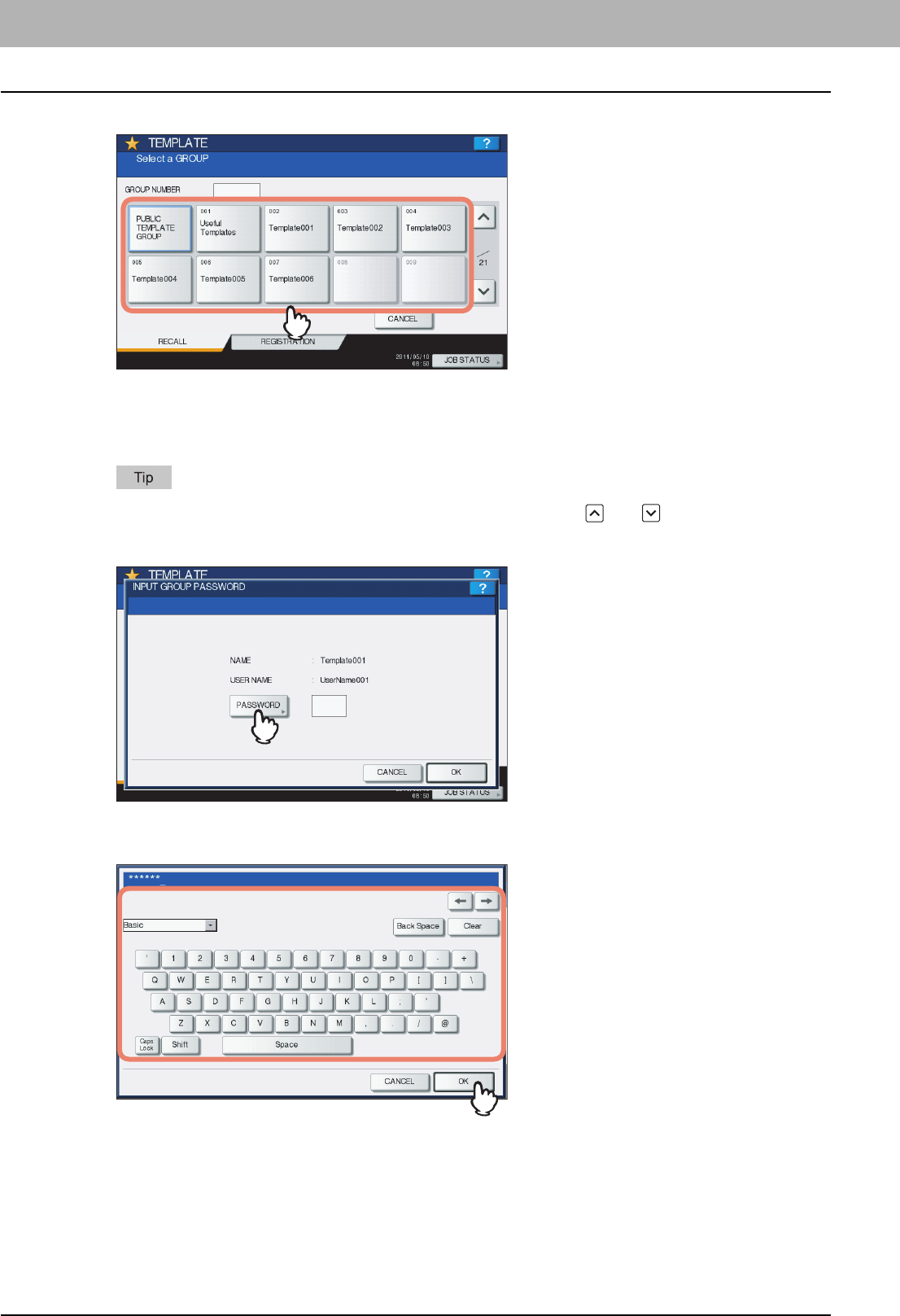 yThe details on the touch panel menus may differ depending on the operating environment such as whether options are
