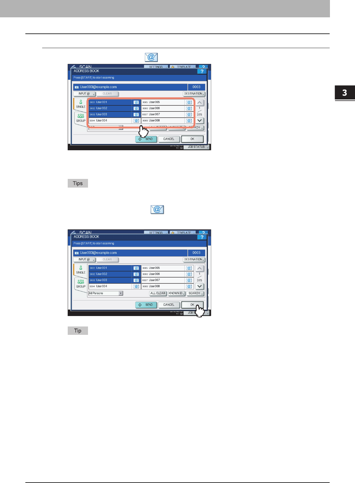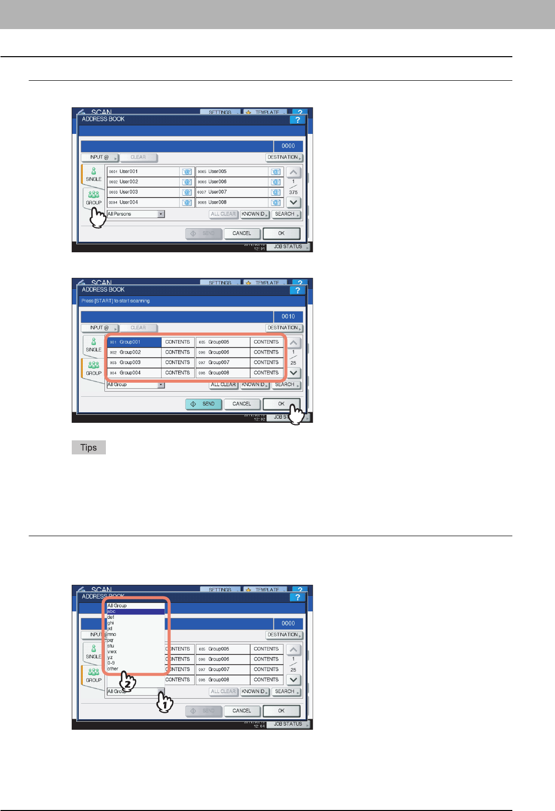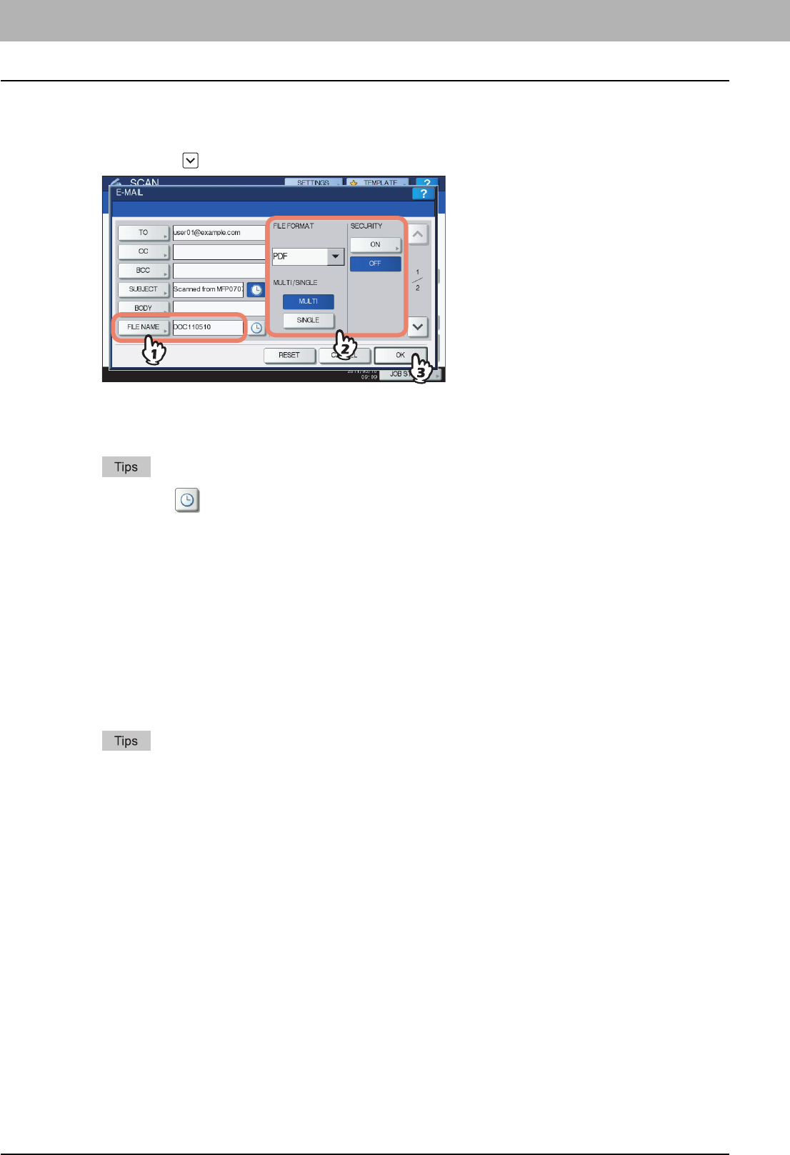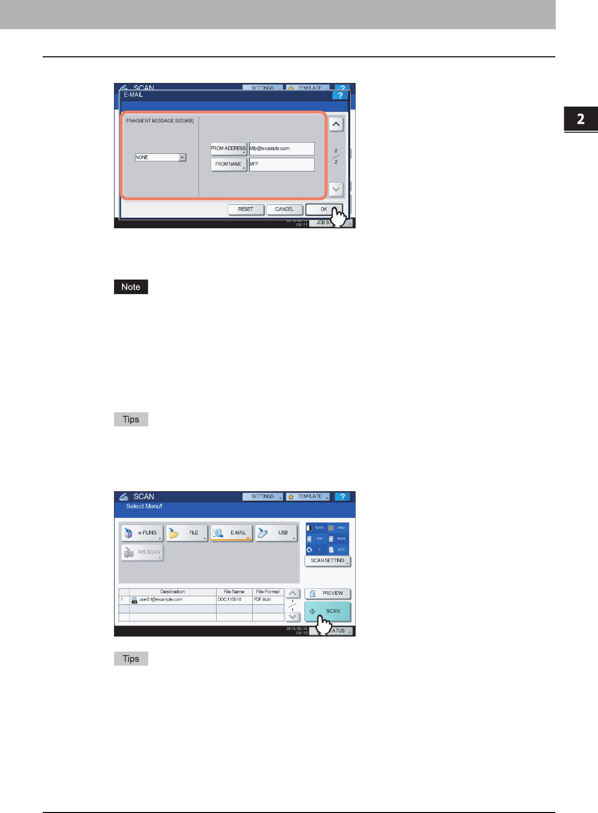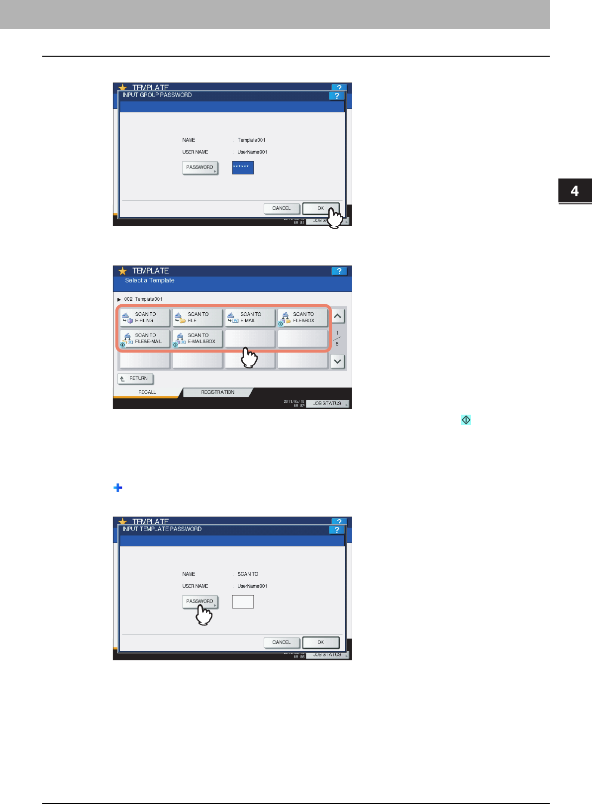 yThe details on the touch panel menus may differ depending on the operating environment such as whether options are