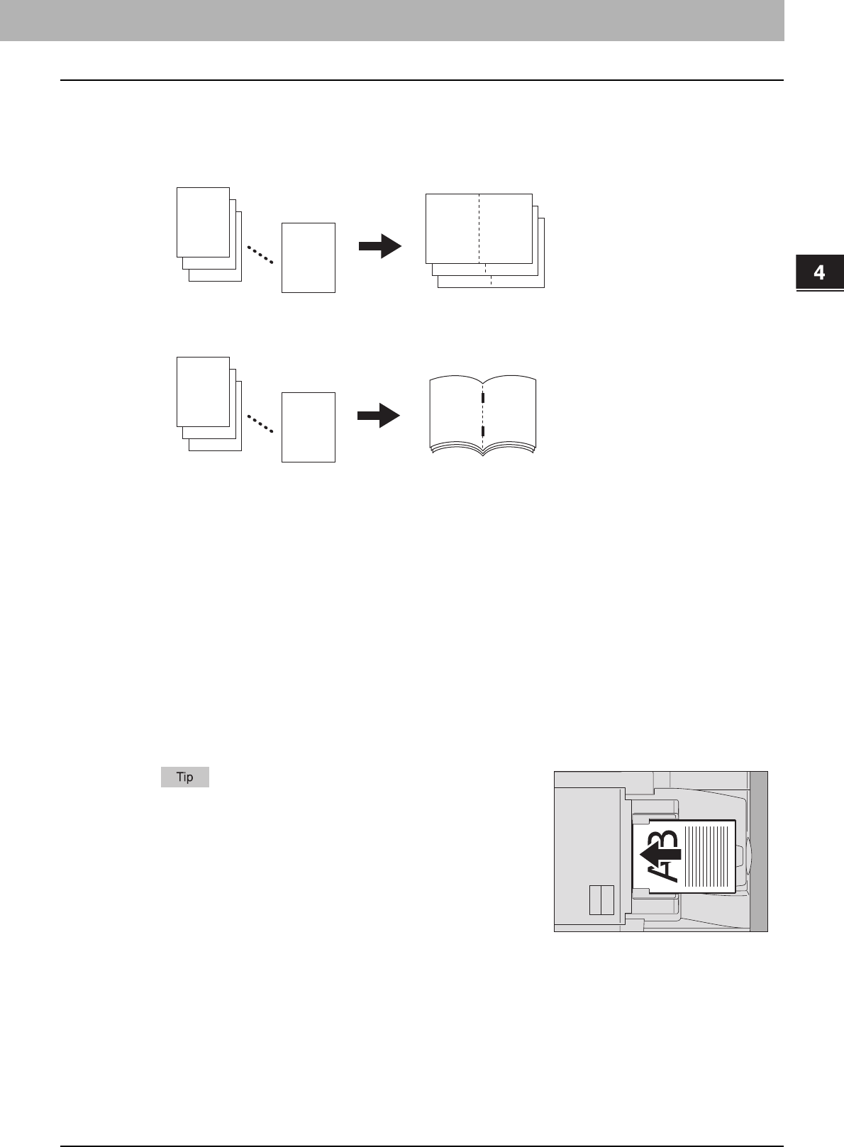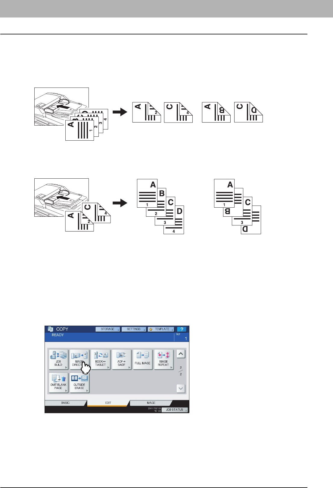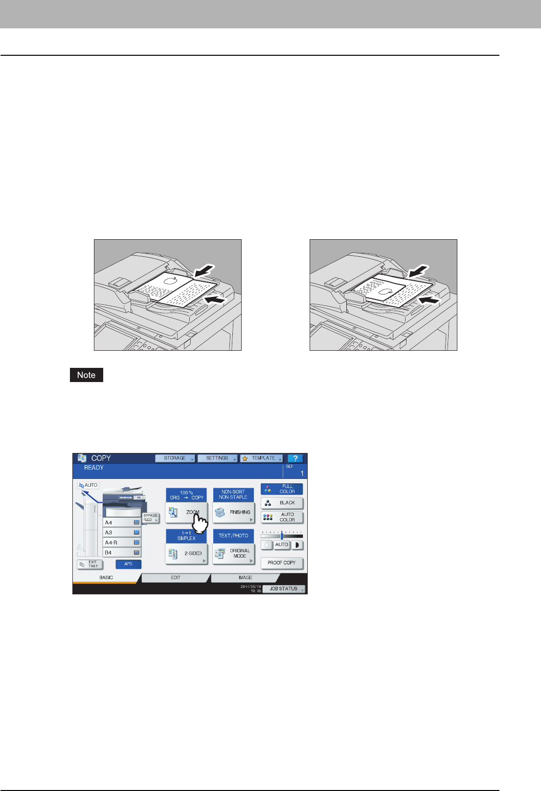 Paper or originals of A4, B5 or LT size can be placed either in a portrait direction or in a landscape direction. In this