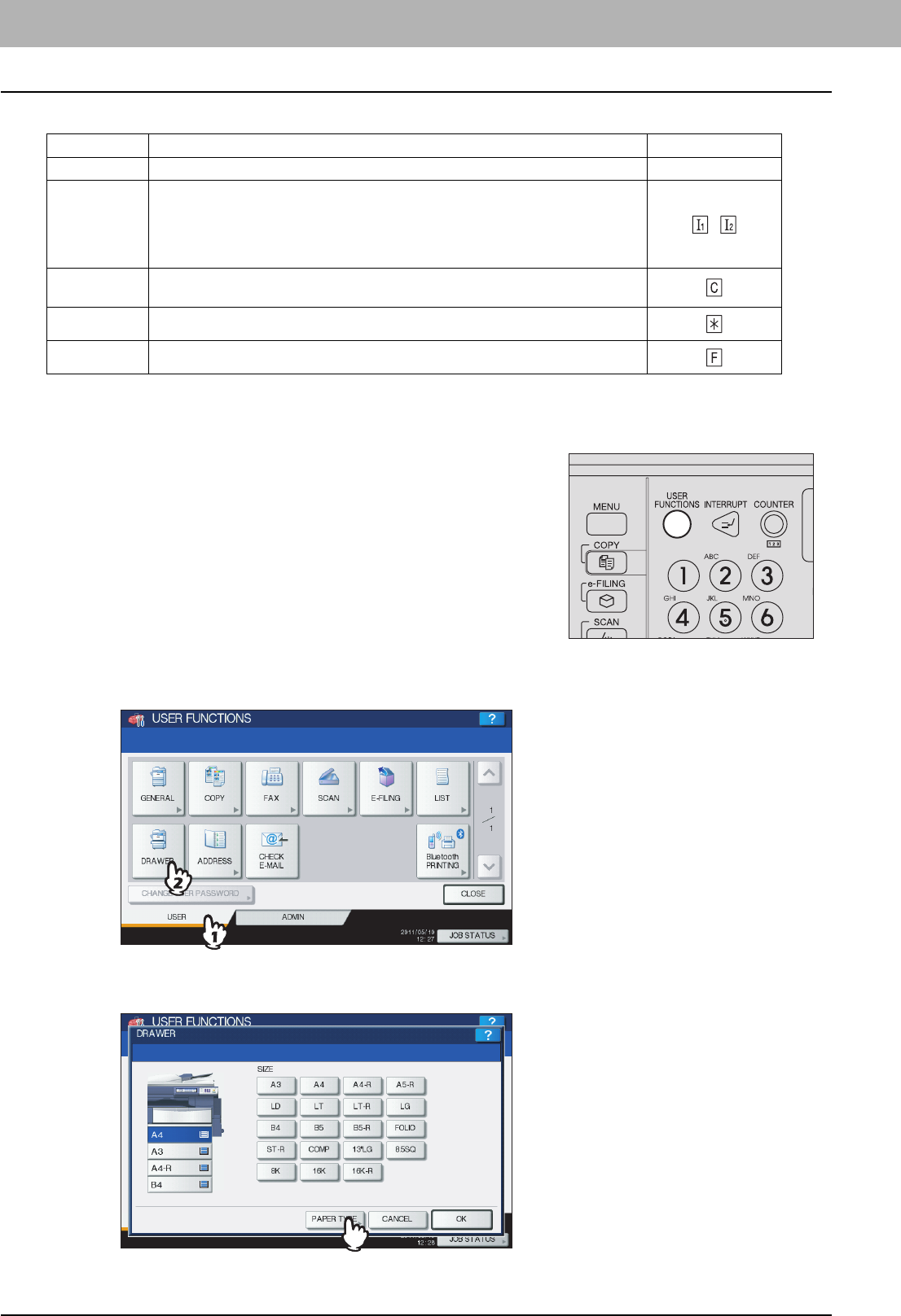 [USER FUNCTIONS] button ....................................... 16