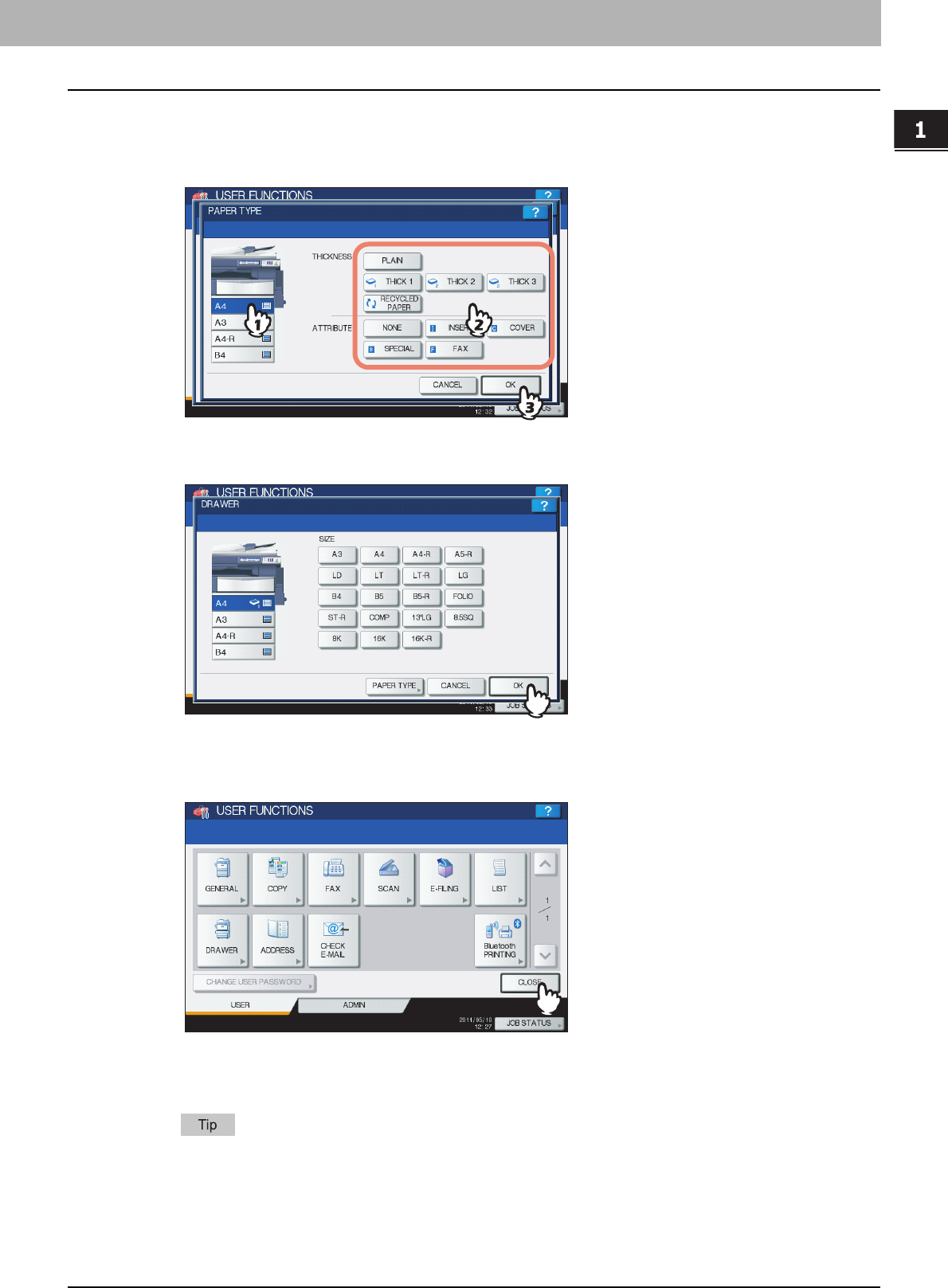 Paper type on the bypass tray .....................................10