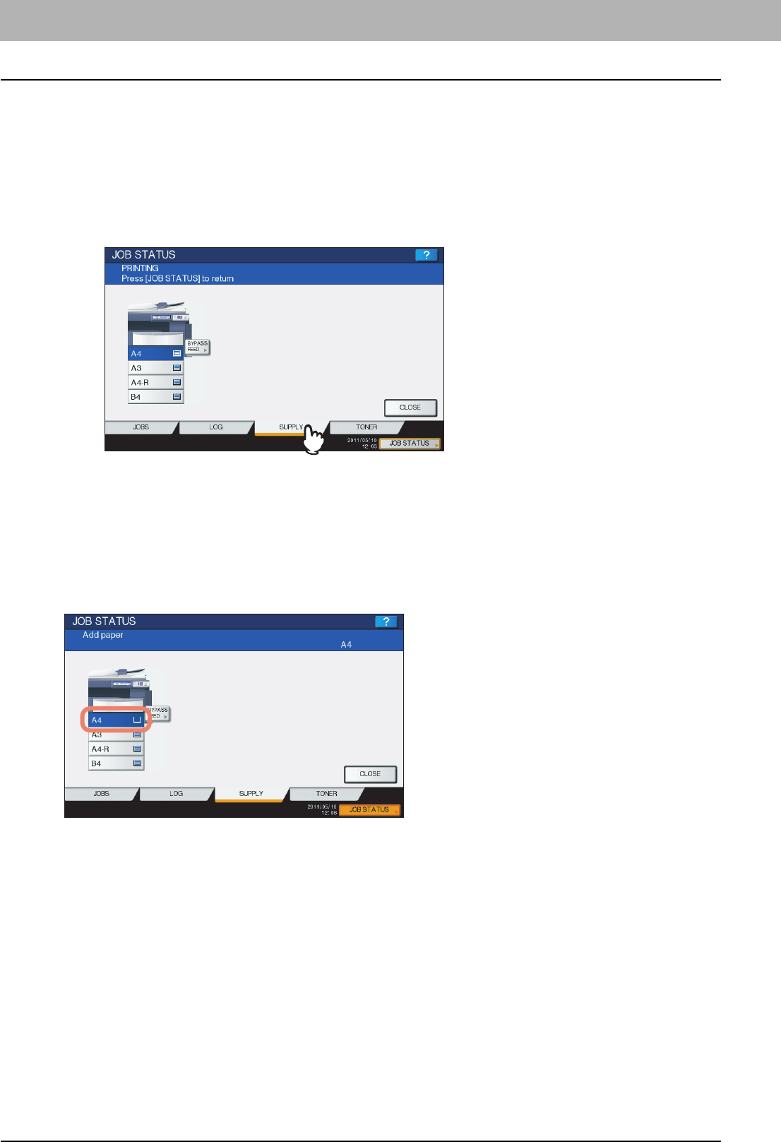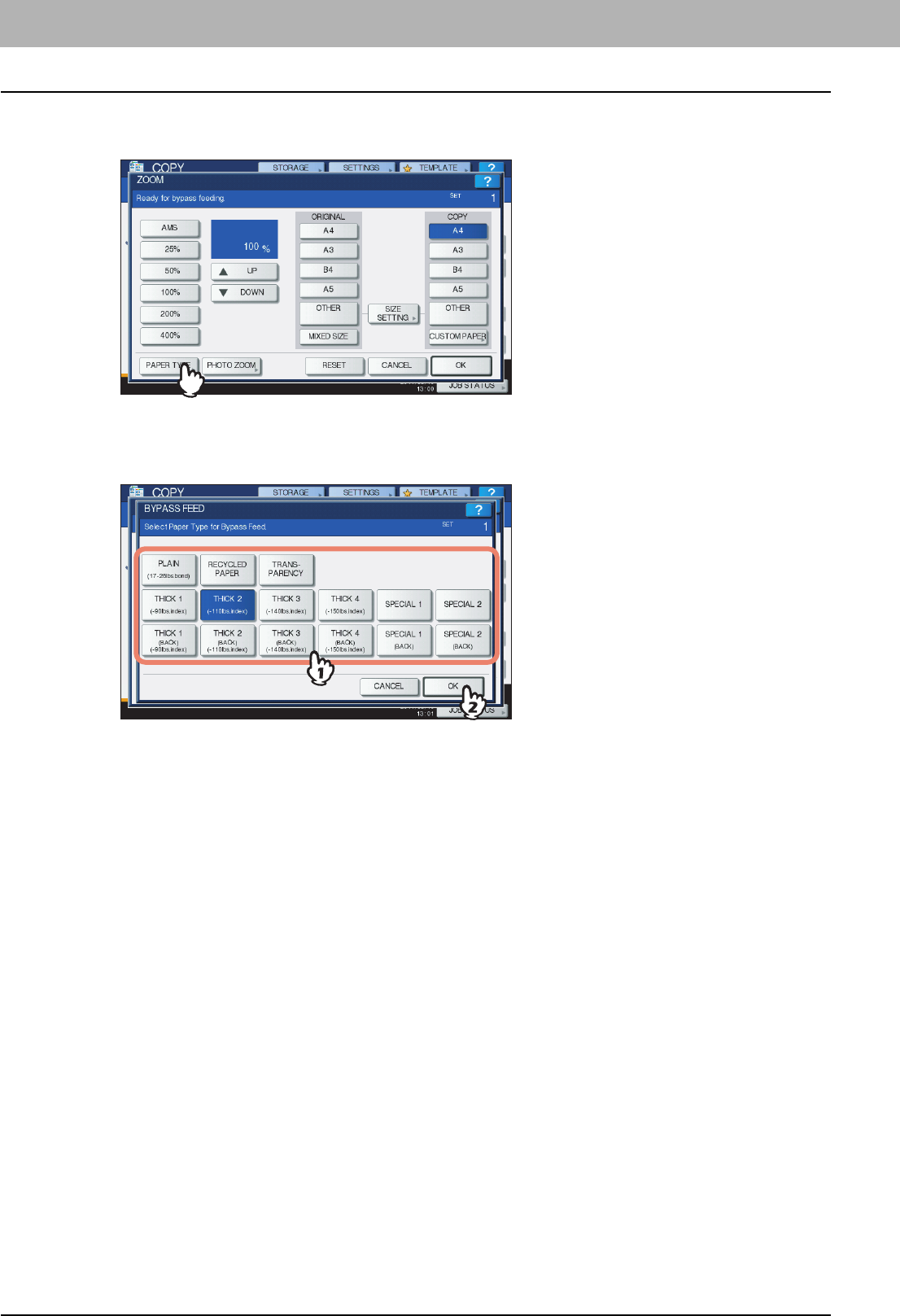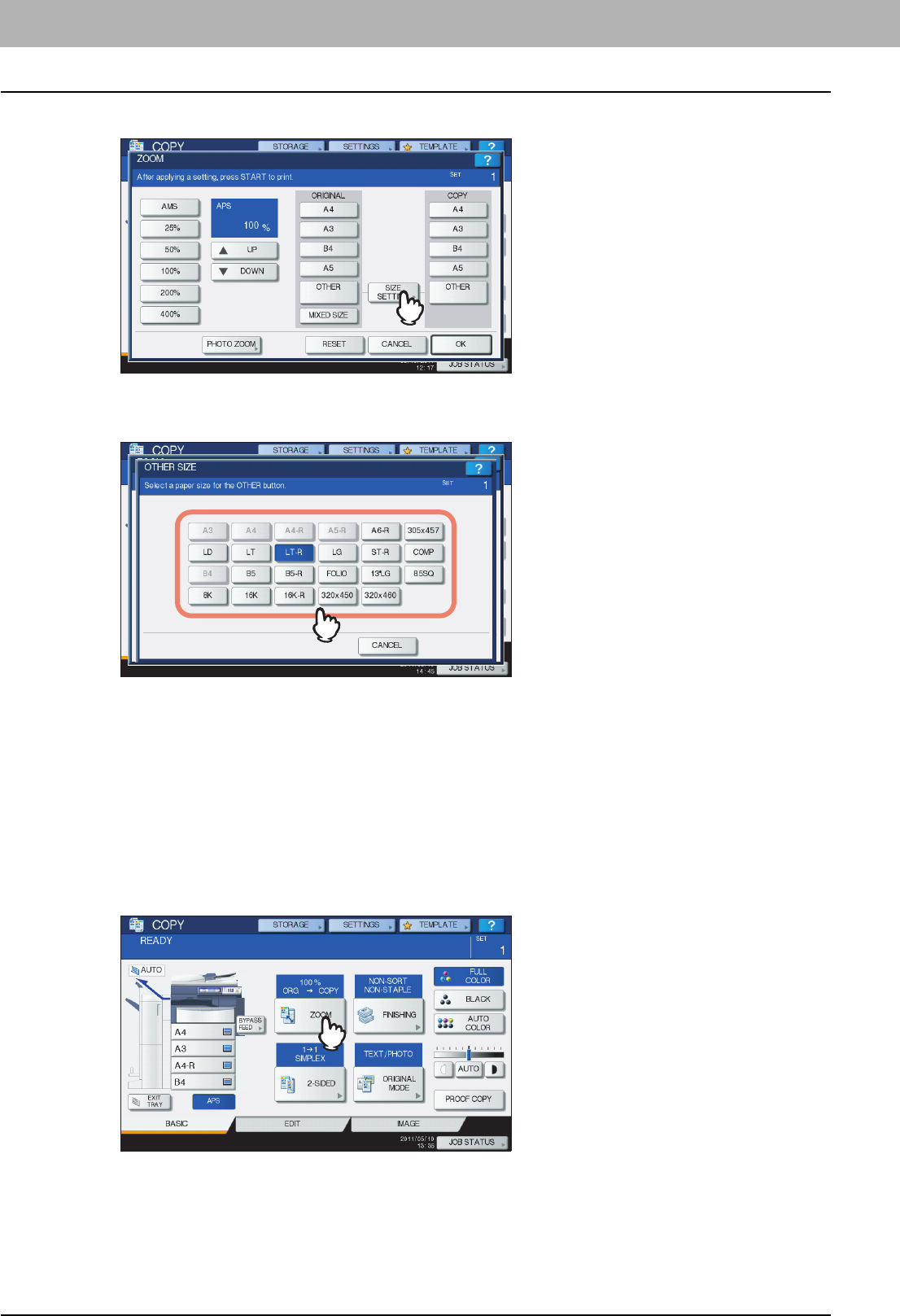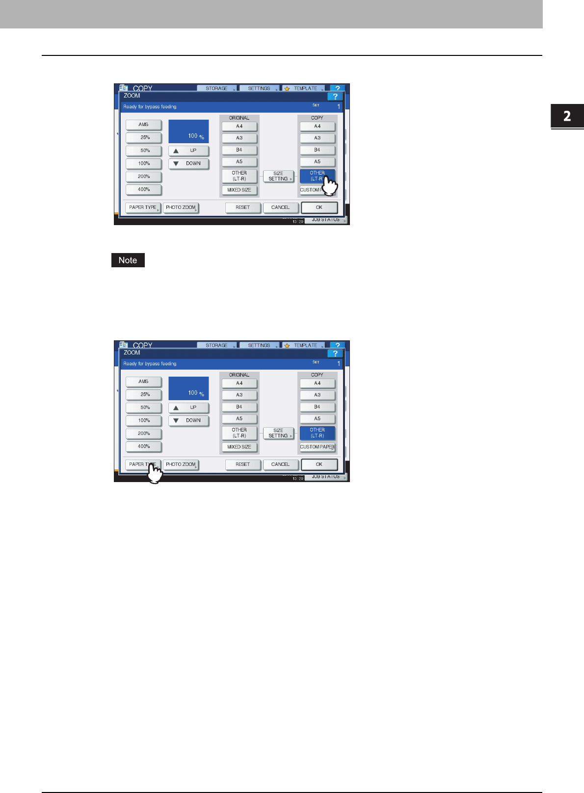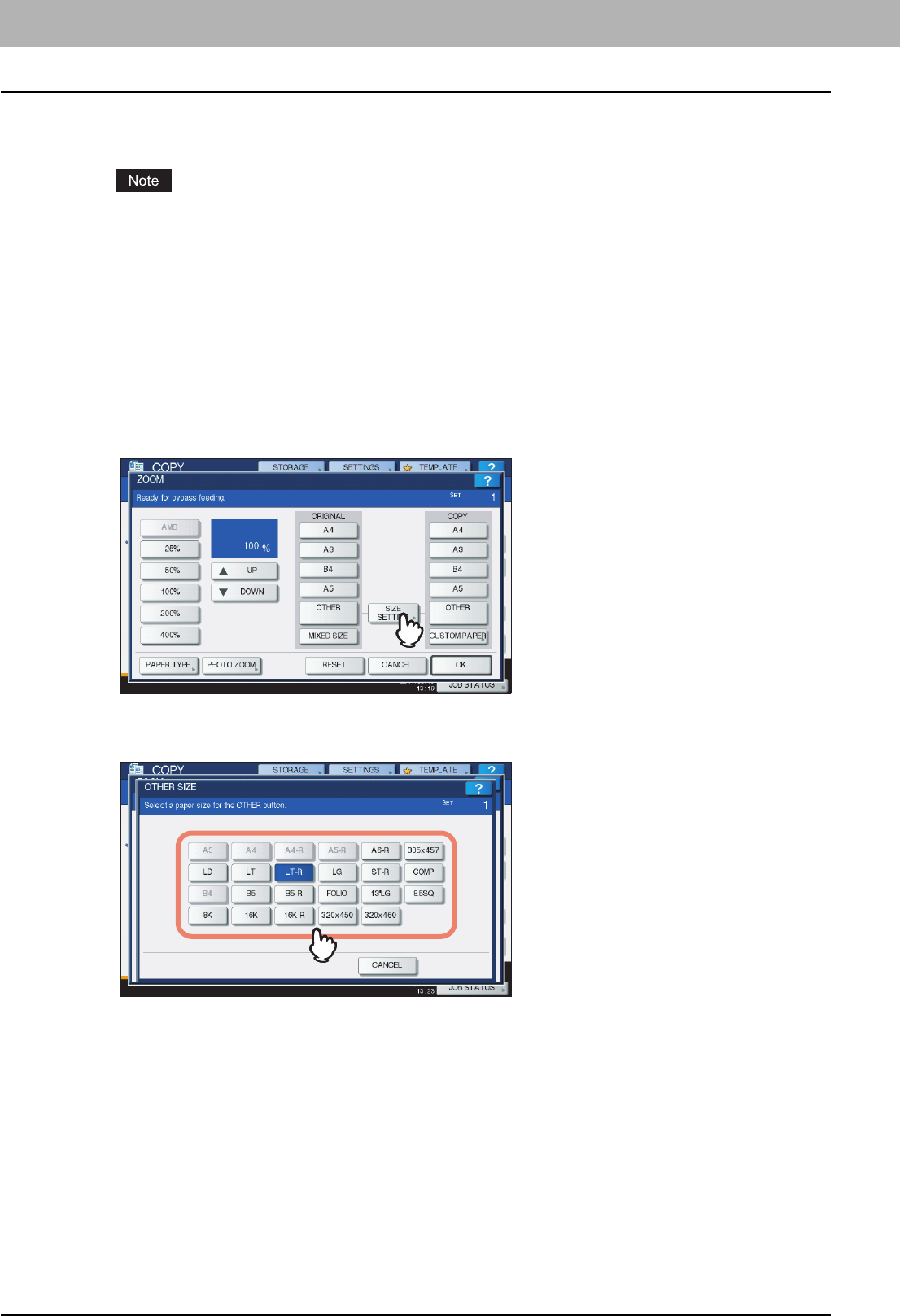 yScreens of when paper in the A/B format is used are given in this manual. If you use paper in the LT format, the display
