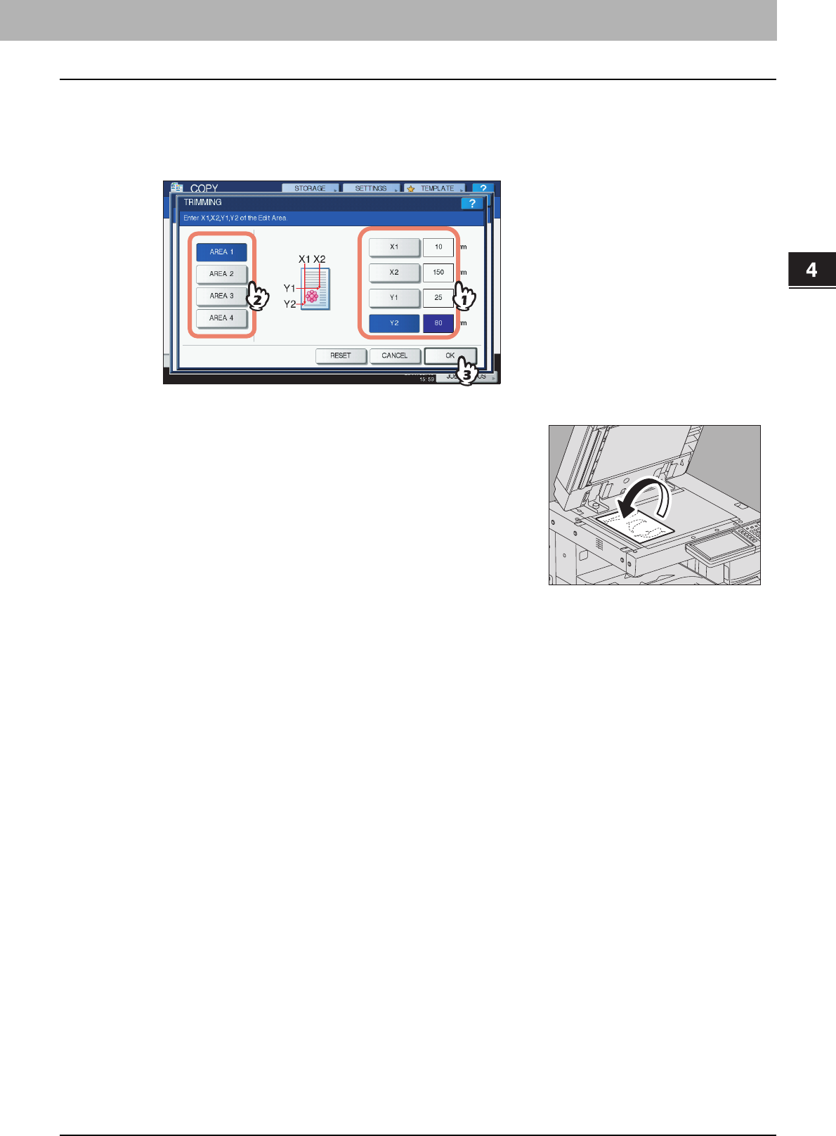 e.g.) A4 size original on the original glass