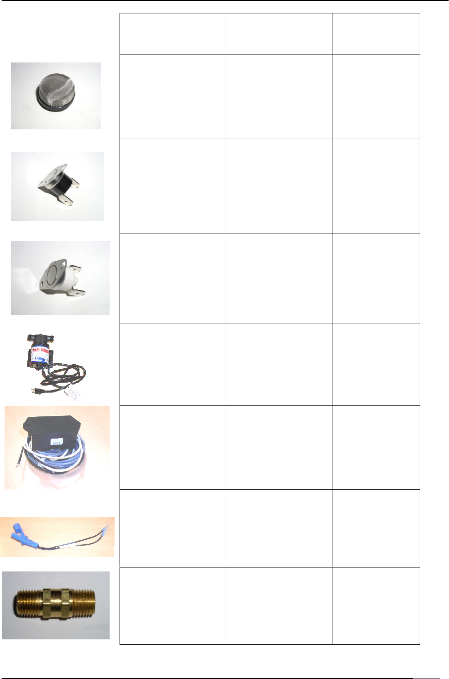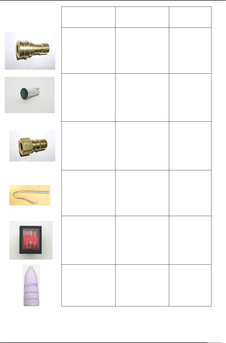 brass fittings, power chords, hoses, switches, heater elements and heater