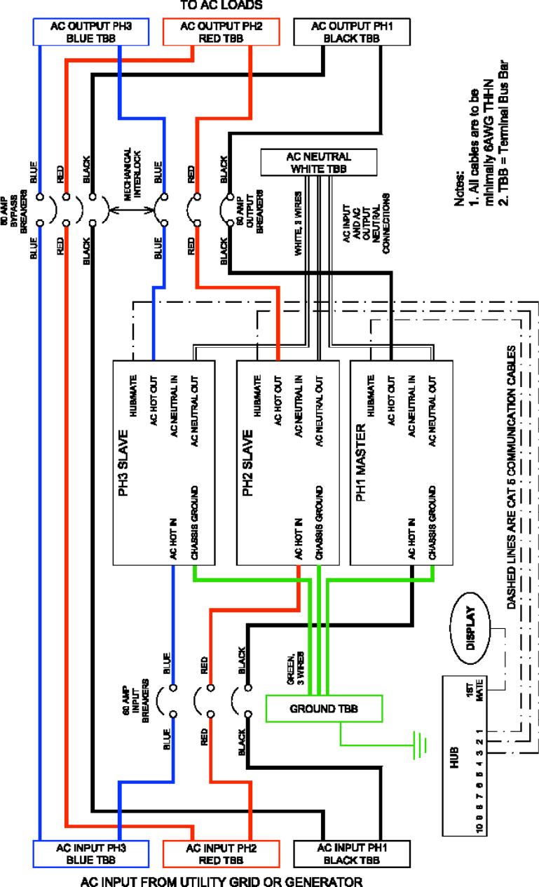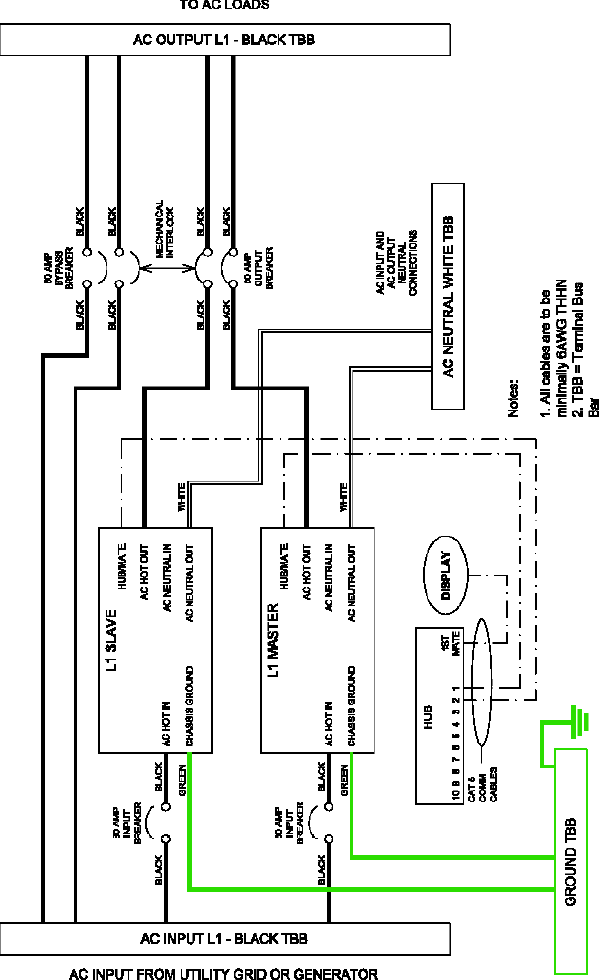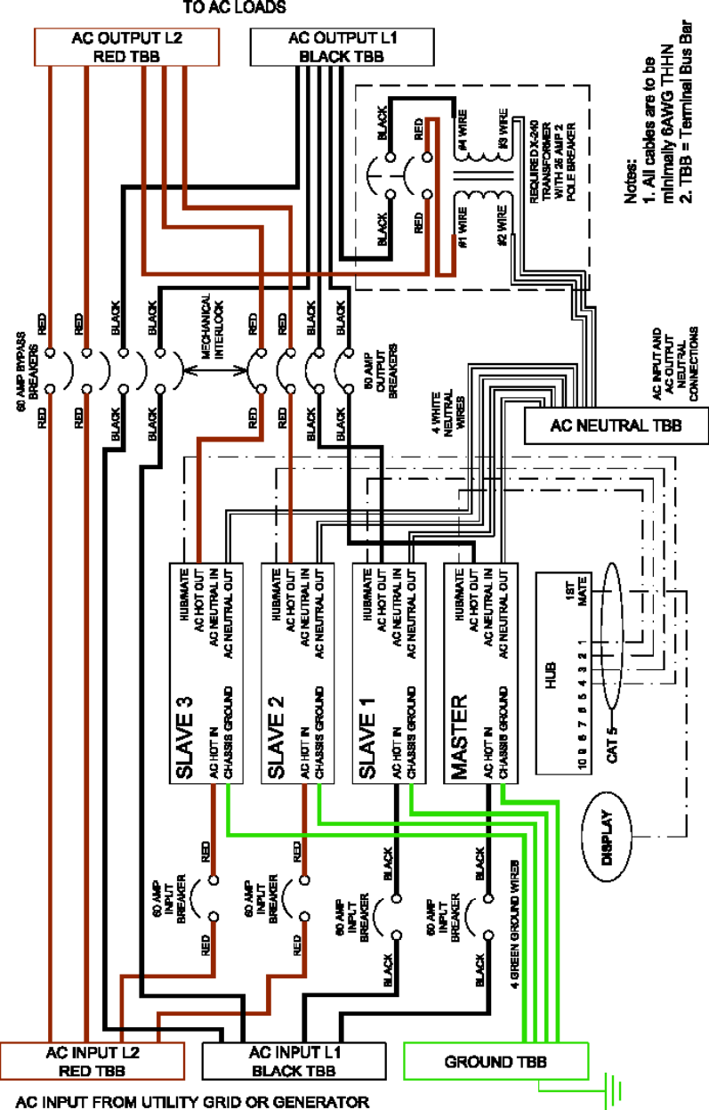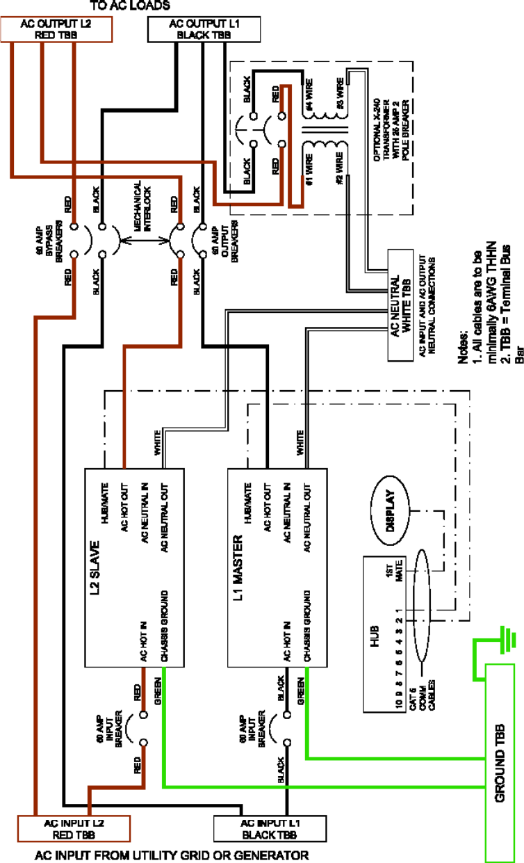 • All OutBack equipment must be installed according to their accompanying instructions and manuals