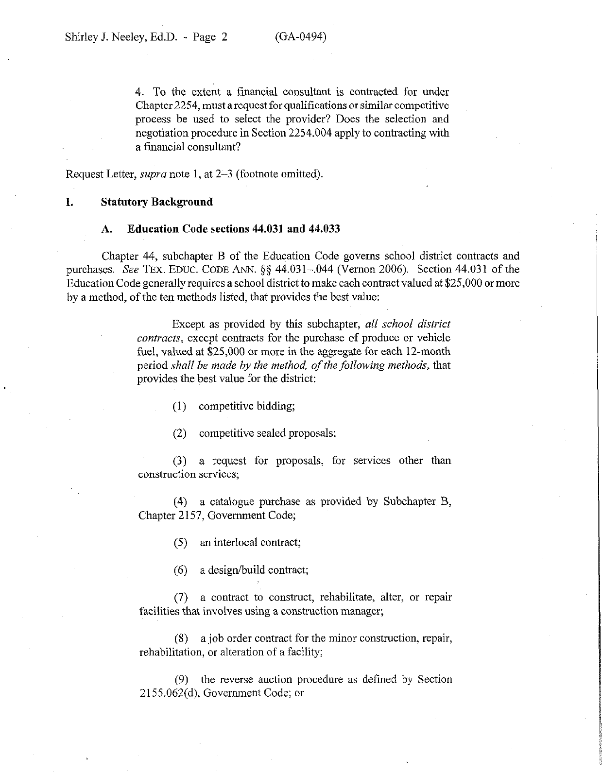 Shirley J. Neeley, Ed.D. - Page 2 (GA-0494)