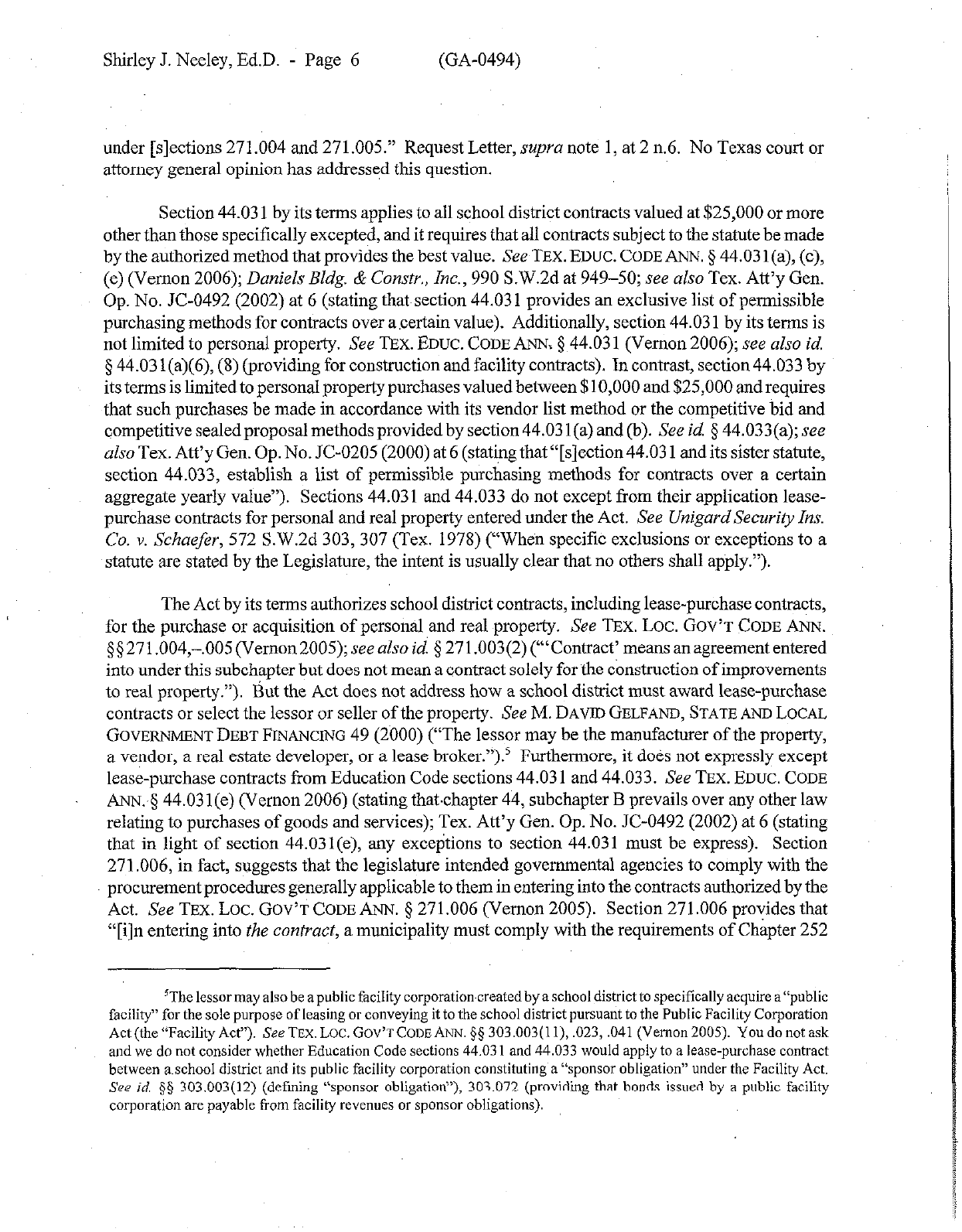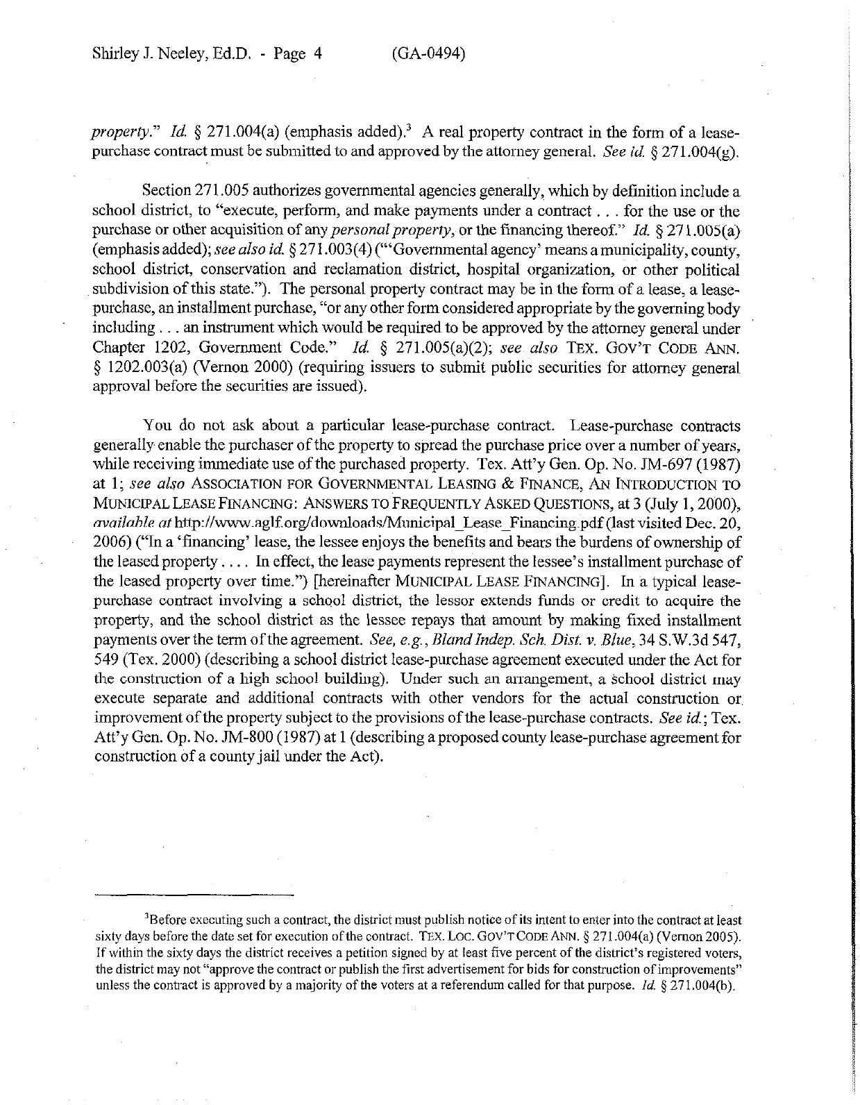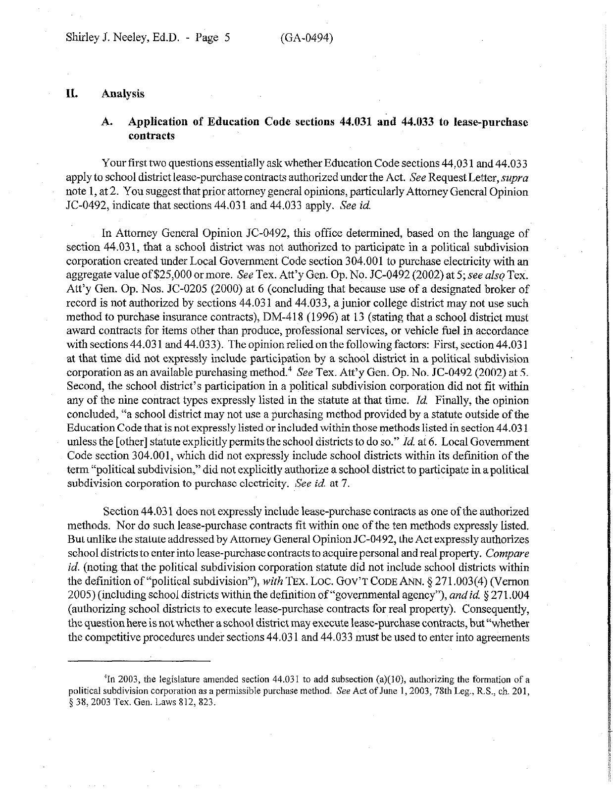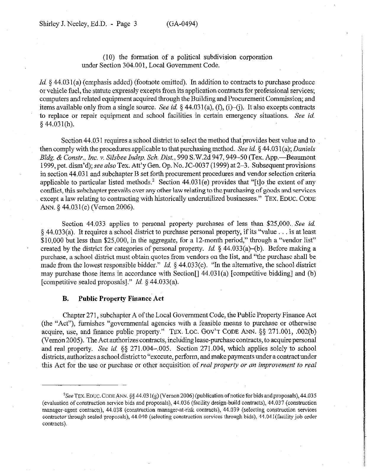 Shirley J. Neeley, Ed.D. - Page 3 (GA-0494)